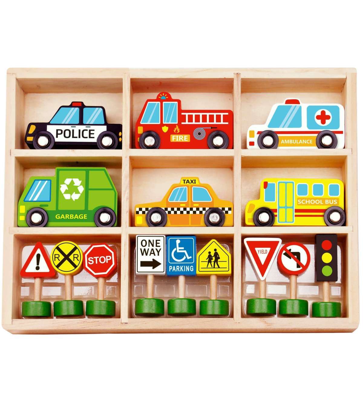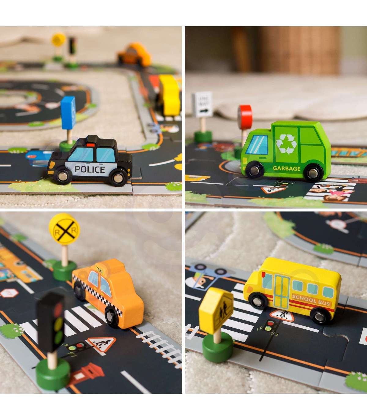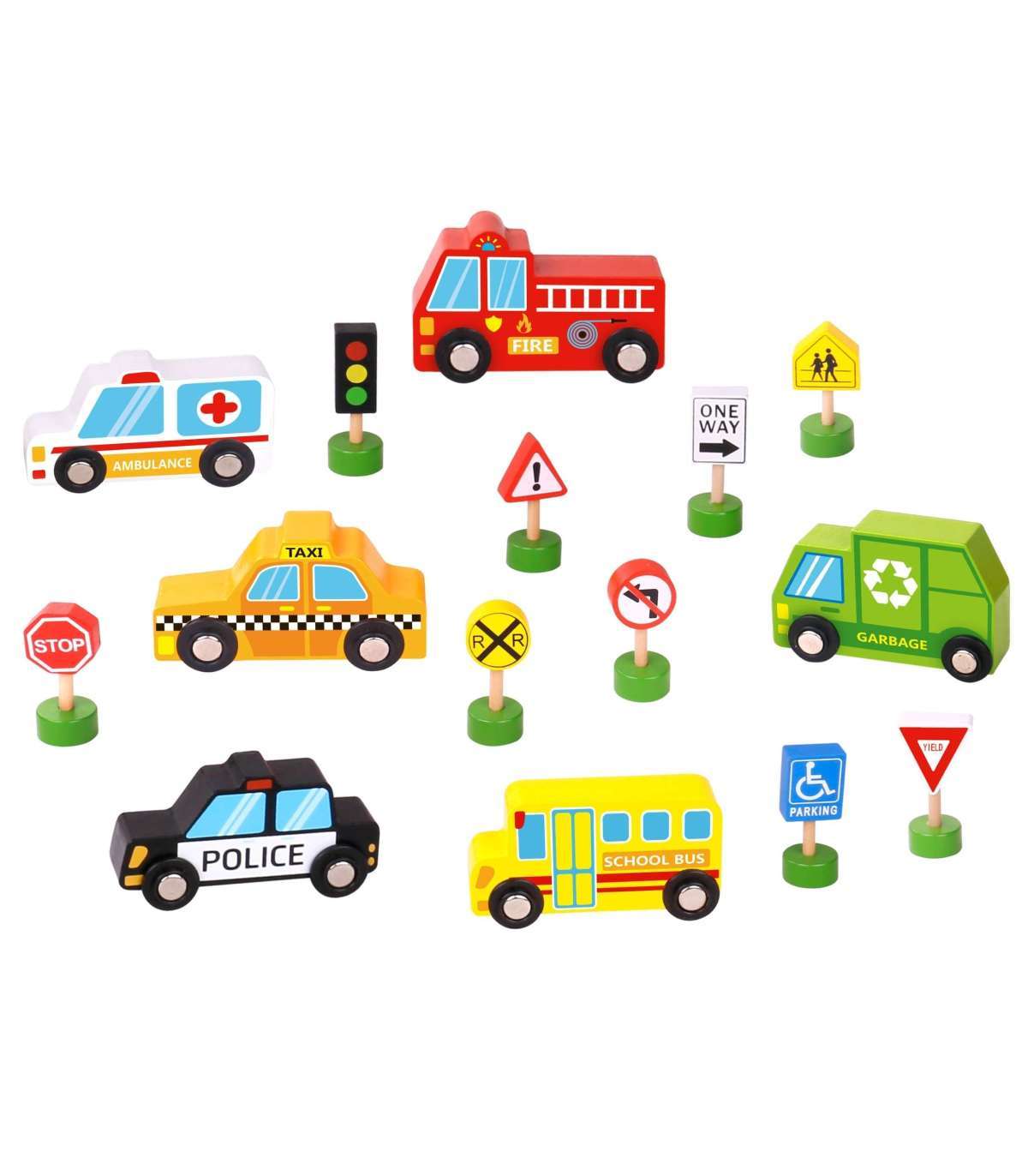 WOOPIE GREEN Puidust sõidukite ja liiklusmärkide komplekt, 15 osa