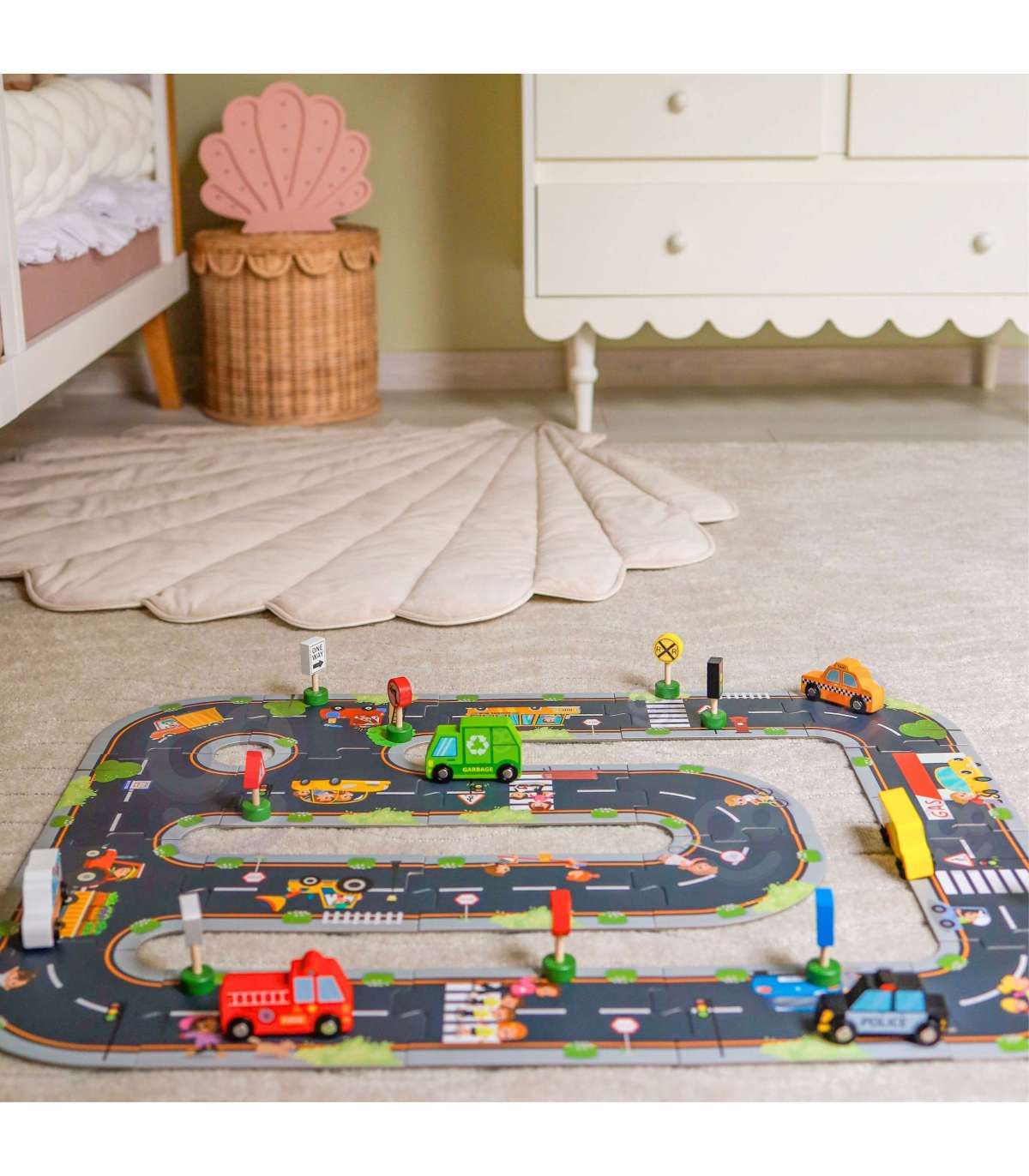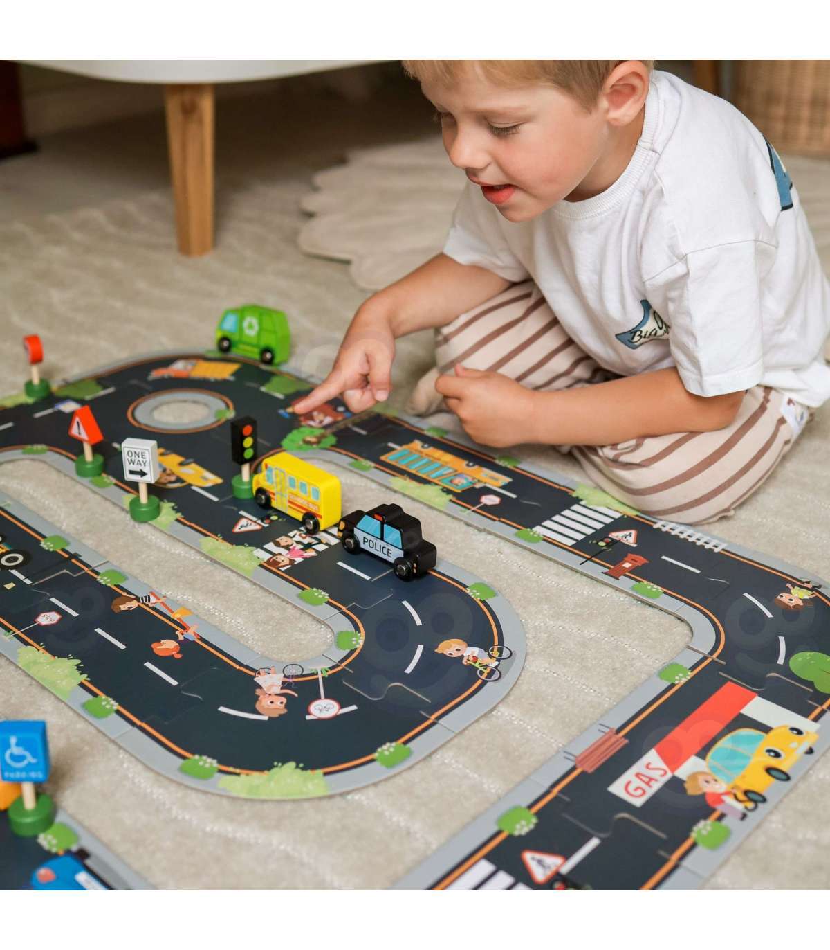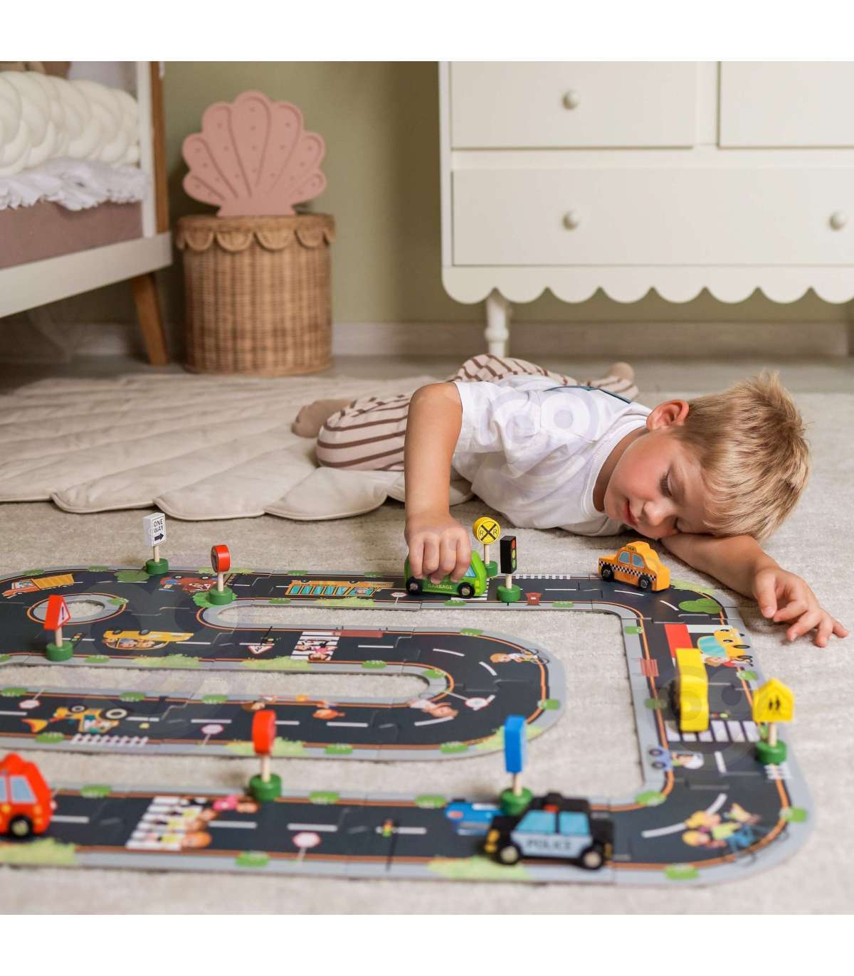 - Arendab kujutlusvõimet ja loovust – laps saab luua oma linnu, stsenaariume ja liiklussituatsioone