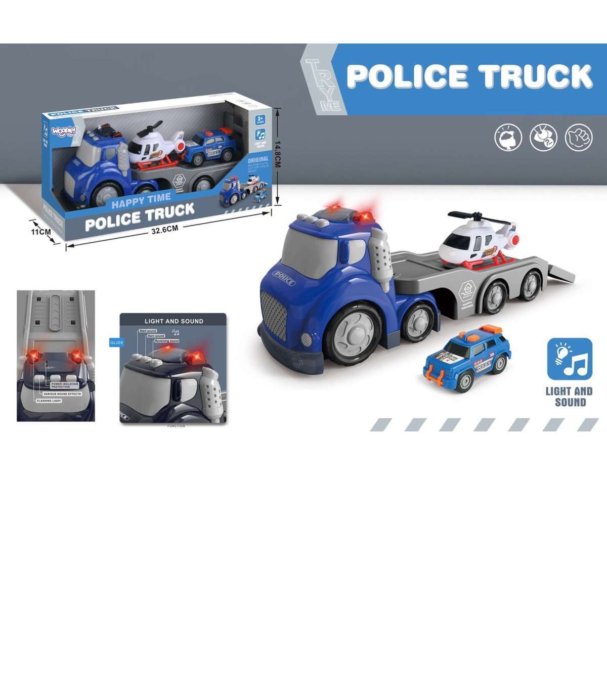 WOOPIE sinine politsei puksiirauto (City Truck) heli- ja valgusefektidega