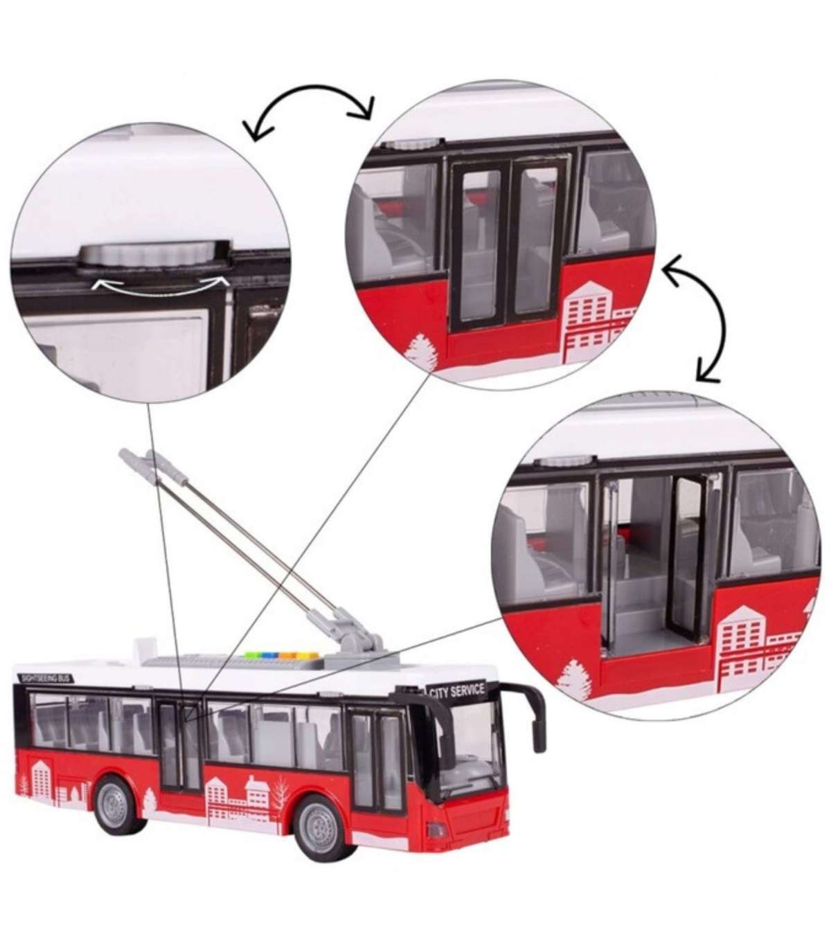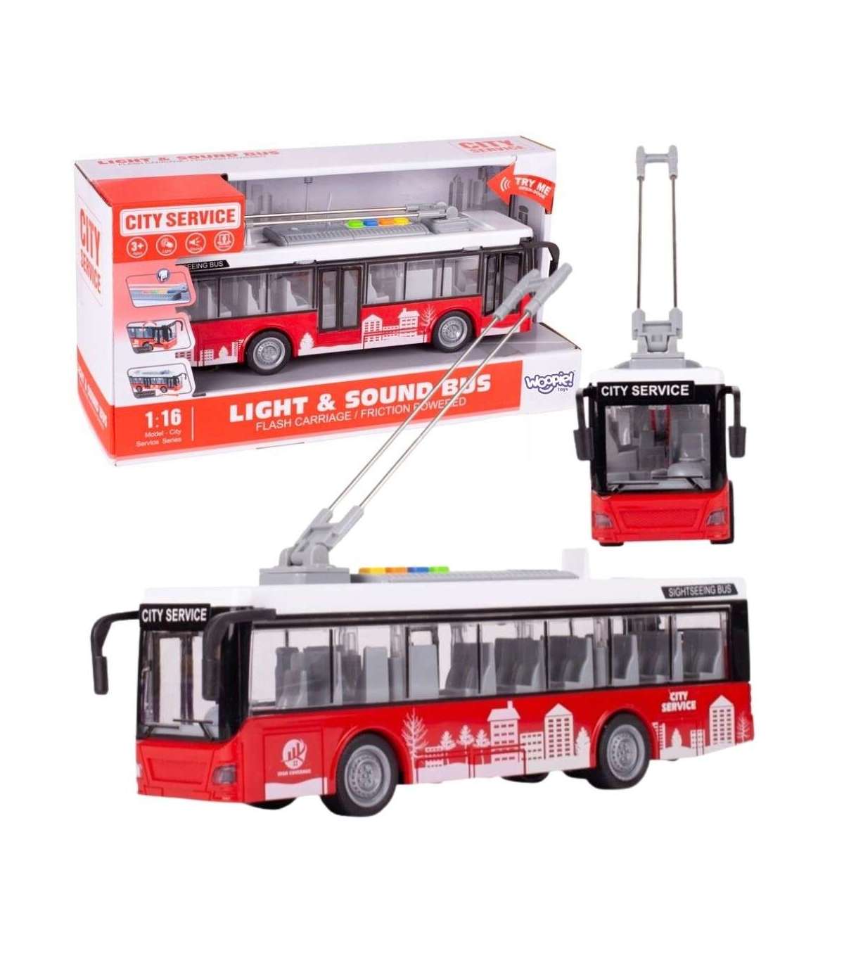 Suur rõõm väikestele linnatranspordi huvilistele! Realistlik WOOPIE linna trollibussi mudel on suurepärane mänguasi lastele, kes armastavad sõidukeid ja igapäevaelust stseenide mängimist. Sõidukul on palju sisseehitatud funktsioone, mis ei lase igavust tekkida. See on varustatud heliefektide, sisevalgustuse, liikuvate pantograafide ja avatavate ustega. Mänguasjal on neli kummiratast ja hõõrdmootor. Piisab selle ette- või taha lükkamisest ning see sõidab ise mitme meetri ulatuses sirgjooneliselt.