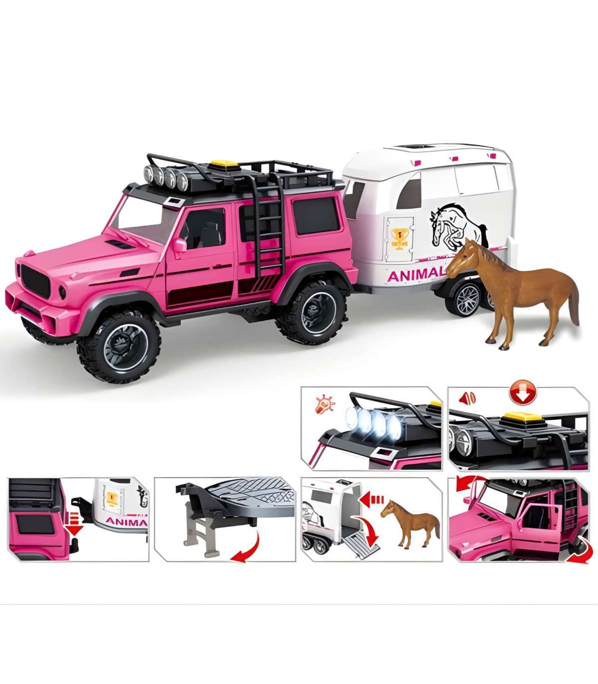 WOOPIE Zestaw Różowy Samochód Terenowy z Przyczepką i Figurką Konia