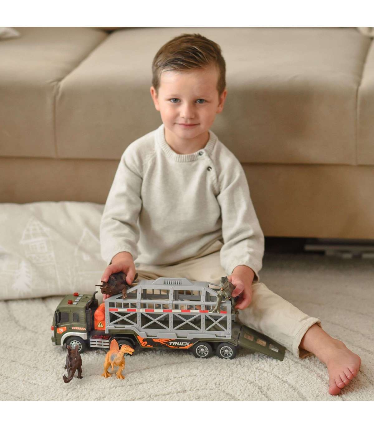 WOOPIE Ciężarówka Transporter Dinozaurów Auto z Dźwiękiem i Światłem