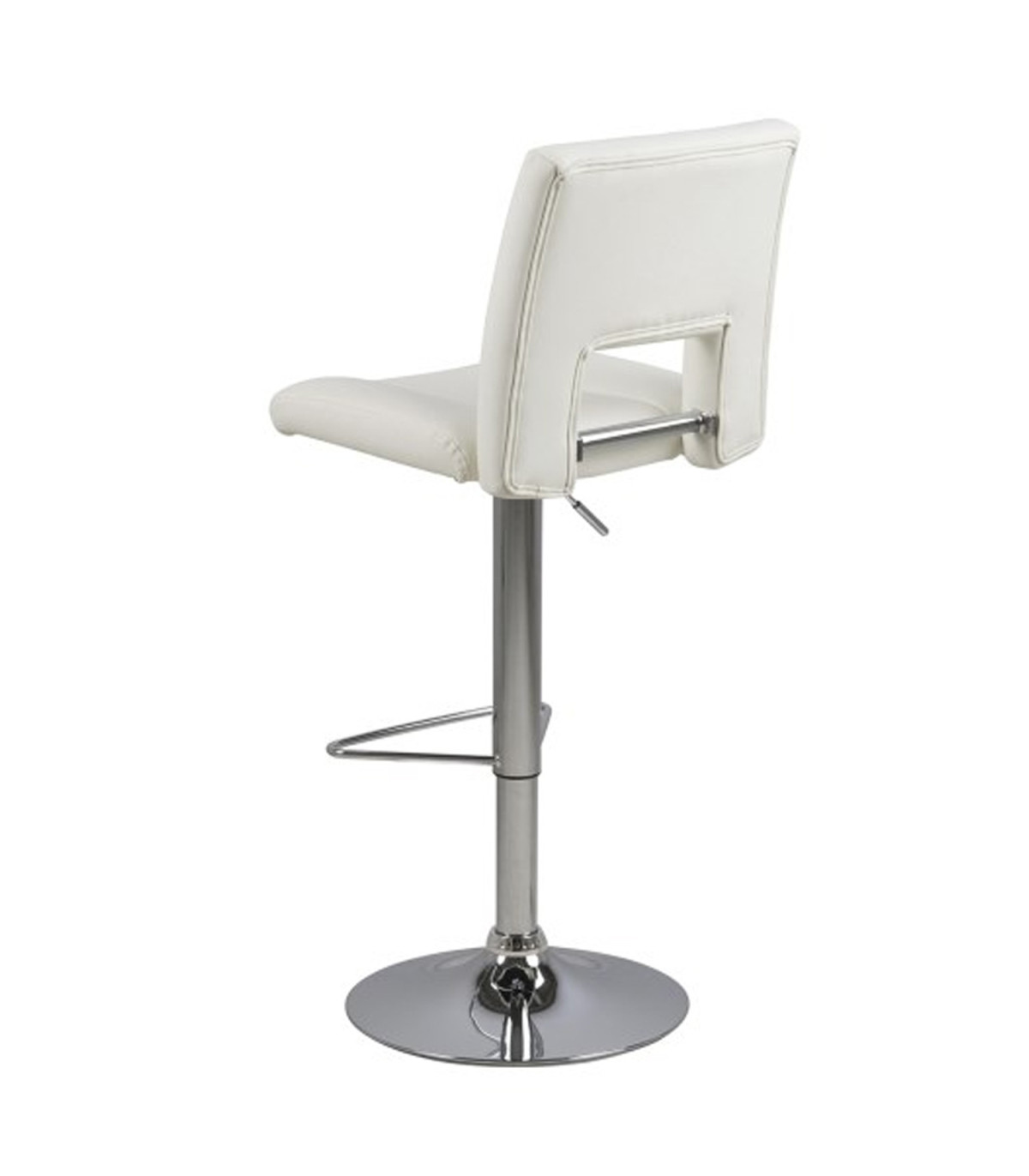 Baaritool SYLVIA 41,5x52xH115cm, iste ja seljatugi: valge kunstnahk, jalg: kroom. Istumiskõrgus reguleeritav gaasamordi abil: 62-83cm. Kaalupiirang: 110kg.