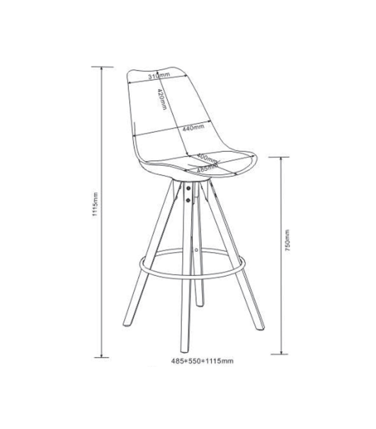 Baaritool on kaasaegne ja minimalistlik. Kinnitatud istmepadi pakub lisamugavust. Tugev jalgade konstruktsioon annab toolile hea stabiilsuse. Iste ja seljatugi: kunstnahk, värvus: valge, jalad: kummipuit, peitsitud. Kaalupiirang: 110kg. Mõõdud 48,5x55xH111,5cm.