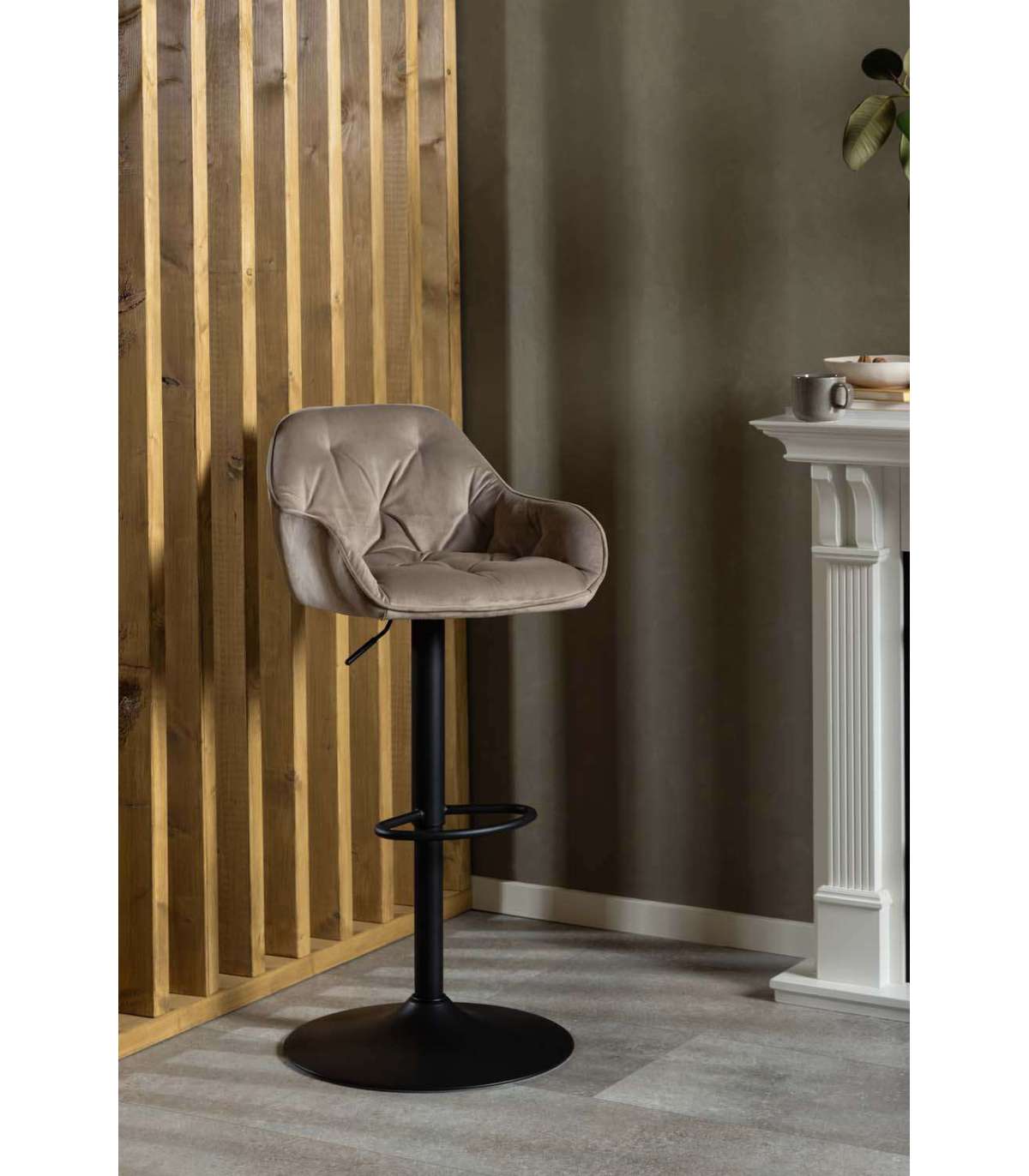 Reguleeritava kõrgusega baaripukk sobib ideaalselt hommikukohvi või pärastlõunase eine nautimiseks. Iste on polsterdatud pehme beeži sametkangaga. Must pulbervärvitud terasest alus kindlustab baaripuki stabiilsuse. Mõõdud on 52x52xH109cm. HOOLDUS: Hooldus piirdub tolmuimemise ja plekieemaldusega. Plekkide eemaldamisel tuleb olla ettevaatlik. Katsetage plekieemaldajaid esmalt vähem nähtaval alal. Ärge kunagi kasutage lahusteid. Ärge asetage mööblit otsese päikesevalguse kätte. Alus: Kasutage igapäevaseks puhastamiseks seebiveest kuivaks väänatud lappi. Rooste vältimiseks pühkige pind kuivaks. Ärge hõõruge pinda kõvade esemetega.