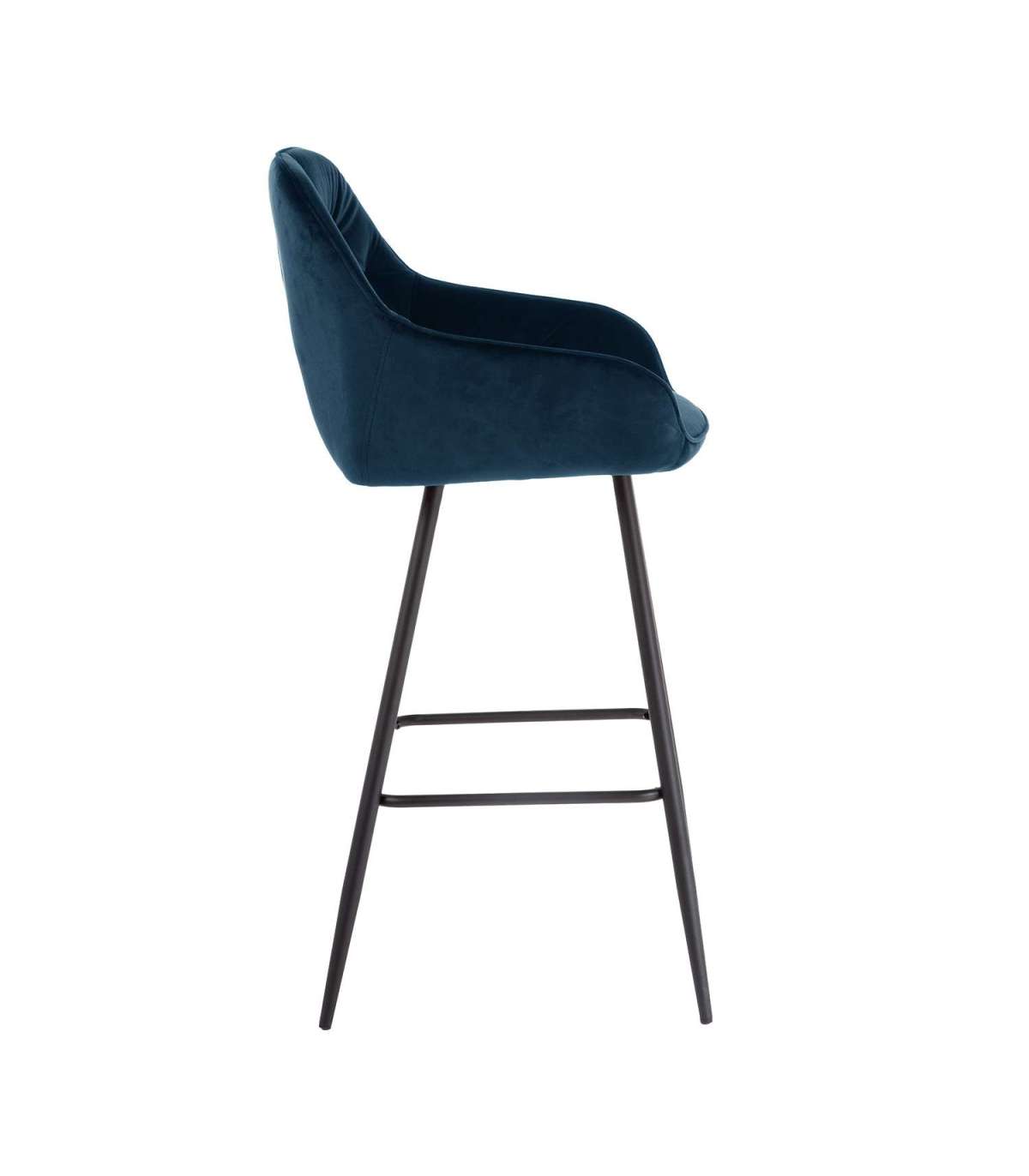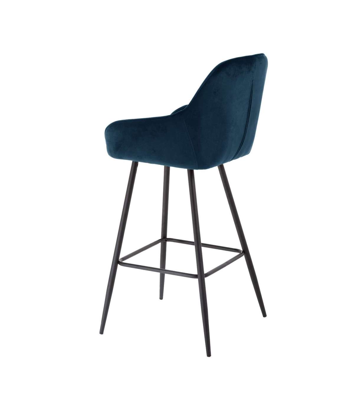 Baaritool BRITA sinine samet. Mugava vormiga painutatud vineerist iste on kergelt polsterdatud ja kaetud sametkangaga. Kattematerjal: 100% polüester, 260g/m². Martindale 25 000. Tooli jalad ja alusraam on valmistatud metallist ja viimistletud musta pulbervärviga. Tooli üldmõõdud on 53x55xH109cm, istme laius 38cm, istme sügavus 43cm, istme kõrgus 75cm. Seljatoe kõrgus 37cm, jalatoe kõrgus 29cm. Kaalupiirang 120kg.