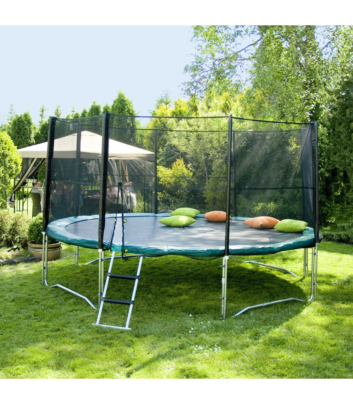 Batuut D366xH88cm, rohelise äärega. Batuut on tore võimalus värskes õhus aktiivseks ajaveetmiseks kogu perele. Elastne ja vastupidav hüppematt on valmistatud musta värvi polüpropeenist. Turvaääre pealmine kiht on valmistatud rohelisest PVC materialist, alumine pool on polüetüleenkangas. Kahe kihi vahel on 15+6mm polüetüleenvahust pehmendus. Turvaääre laius on 27cm. Batuudi raam ja jalad on valmistatud galvaniseeritud terastorust. Ülemise ääre toru mõõt on D45x1,5mm, jalatorude mõõt on D38x1,5mm. Batuudil on 72 vedru - 138mm/D25x3,2mm. Kaalupiirang 180kg. Turvalisuse tagamiseks soovitame batuudile juurde osta HOME 4 YOU turvavõrk koodida 09412. Pika kasutusaja ja ilmastikutingimuste mõjul kulunud batuudi osad on võimalik välja vahetada. Varuosadena on saadaval, turvavõrk, turvaäär, hüppamismatt ja batuudivedrud. HOIUSTAMINE: batuudi eluea pikendamiseks soovitame see suvehooaja lõppedes lahti monteerida ja hoiustada kuivas, hea ventilatsiooniga ruumis. Puhastage ja kuivatage matt ja turvaäär enne hoiule panekut.