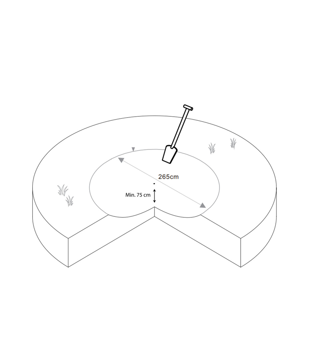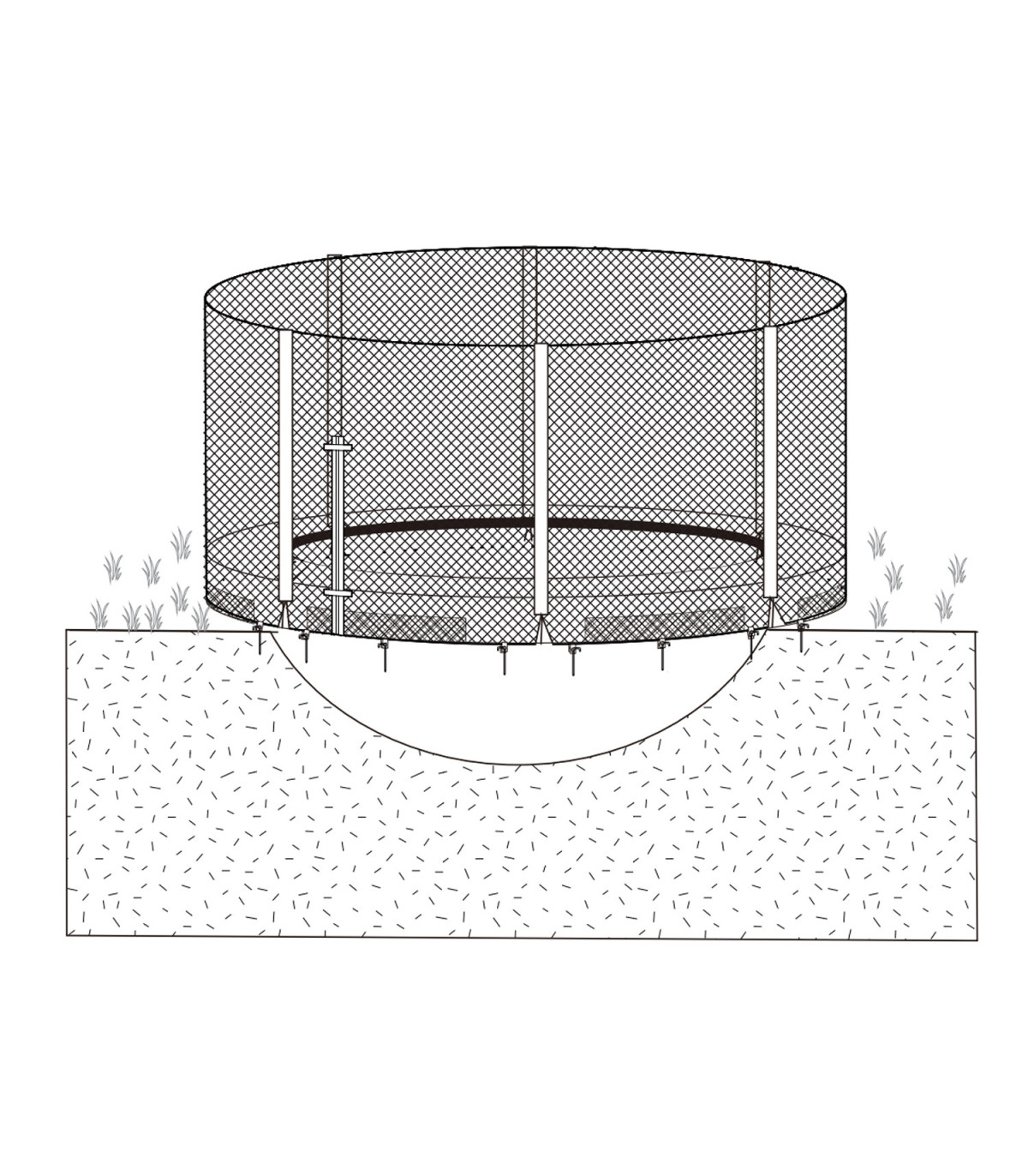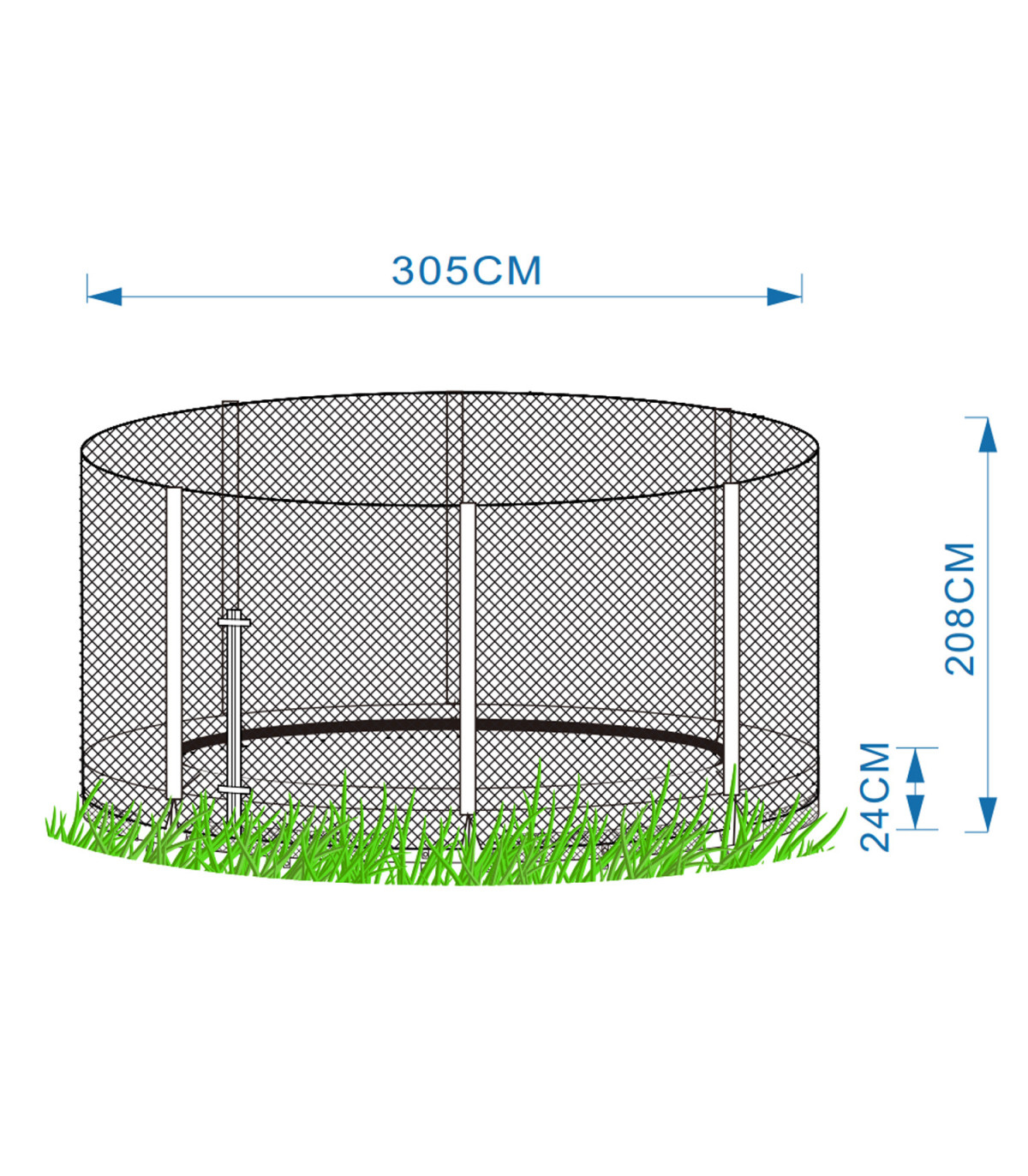 Maapealne batuut turvavõrguga D305cm, rohelise äärega. Batuut on tore võimalus värskes õhus aktiivseks ajaveetmiseks kogu perele. Maapealne batuut on ohutum alternatiiv tavapärastele kõrgetele batuutidele. Batuudi paigaldamiseks leidke sobiv statsionaarne asukoht ning kaevake valitud kohale batuudi alla 265cm läbimõõduga, 75cm sügav auk. Batuudi kõrgus maast on 24cm. Elastne ja vastupidav must hüppematt on valmistatud polüpropeenist. Turvaääre pealmine kiht on valmistatud rohelisest PVC materialist, alumine pool on polüetüleenkangas. Kahe kihi vahel on 17mm polüetüleenvahust pehmendus. Turvaääre laius on 27cm. Batuudi raam on valmistatud galvaniseeritud terastorudest. Ääre torude mõõdud on 38x1,5mm, jalgade ja sokli torude mõõdud on 34x1,5mm. Batuudil on 54 vedru - 138mm/D23,5x3,2mm. Kaalupiirang 120kg. Turvavõrk on valmistatud mustast polüestervõrgust. Sissepääsuava on tõmblukuga suletav. Komplekti kuulub kuus vahtplastist pehmendustega tugiposti. Postid on valmistatud galvaniseeritud terastorust D25,4x1,2mm. Võrgu üldkõrgus on 208cm, kõrgus batuudi äärest on 184cm. HOIUSTAMINE: batuudi eluea pikendamiseks soovitame see suvehooaja lõppedes lahti monteerida ja hoiustada kuivas, hea ventilatsiooniga ruumis. Puhastage ja kuivatage matt, turvaäär ja turvavõrk enne hoiule panekut.