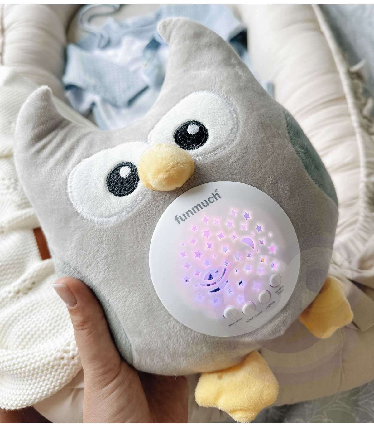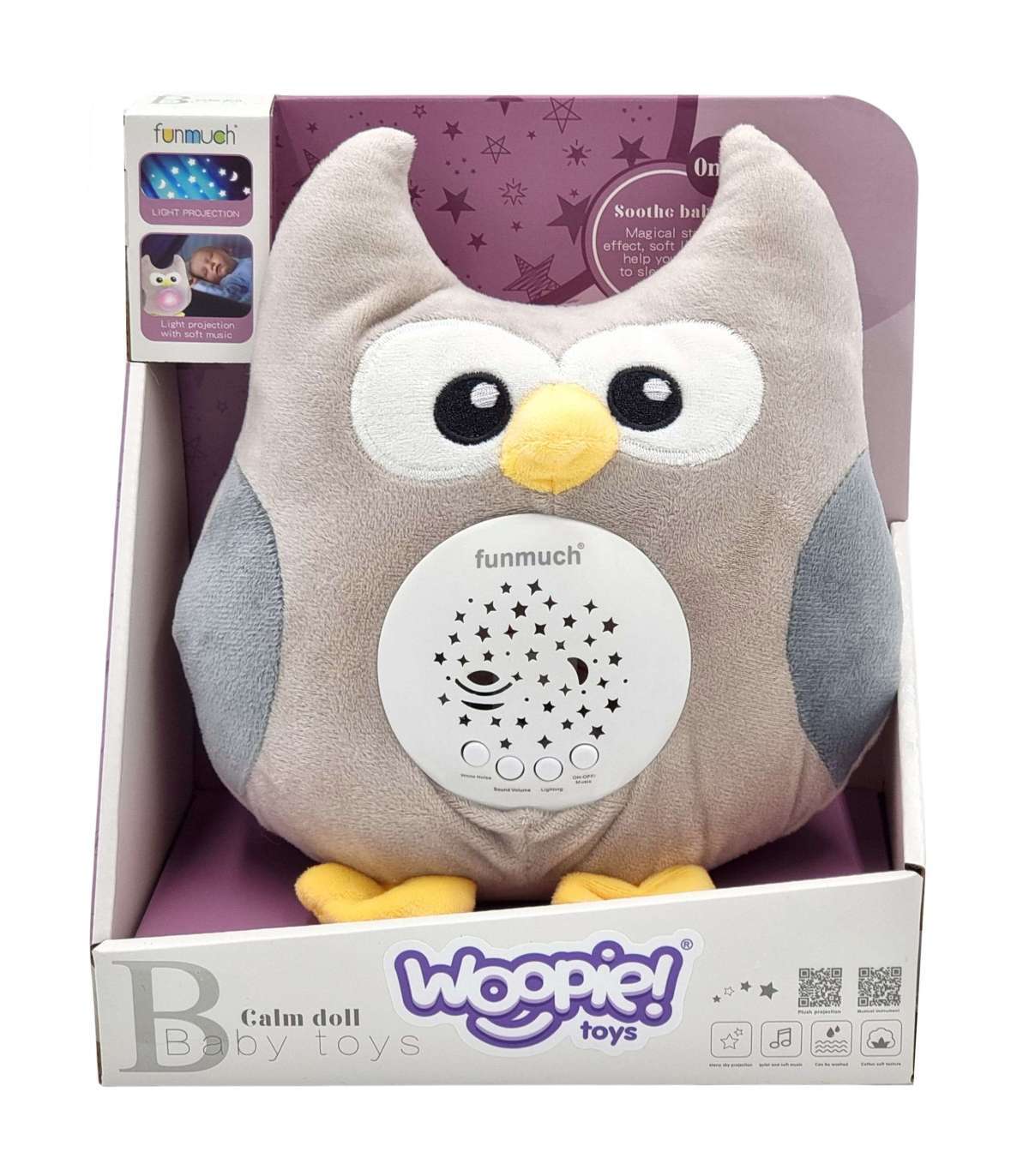 Pehme uinutaja Öökull brändilt Woopie, saab olema teie väikelapse unekaaslane. Mänguasi on ideaalne imikutele ja vanematele lapsele, kes ei taha üksinda magama jääda. Öökull on ideaalne sõber magusate unede jaoks ja päästja kapist tulevate koletiste eest. Kallistusmänguasjal on 4 funktsiooni. Kui selle sisse lülitada, kuuleb meeldivaid meloodiaid ja kõht hakkab helendama erinevates värvides. Nupu "White Nose" vajutamisel kostuvad erinevad valged mürahelid või südamelöögi helid. Mänguasjal on kuni 10 erinevat hällilaulu ning võimalus valida 3 helitugevuse taset, et kohandada heli beebi eelistustega ja olla kindel, et ta une ajal ei ärka. Mänguasi on kohandatud imikutele, seetõttu on see täidetud pehme vatiiniga. Lisaks saab pehmet mänguasja ohutult ja lihtsalt puhastada, eemaldades mehhanismi ja hiljem selle uuesti kinnitades. Tänu sellele saab vanem laps kasutada mänguasja kui kaisukat ilma mehhanismita. Iga laps armub sellesse öökulli!