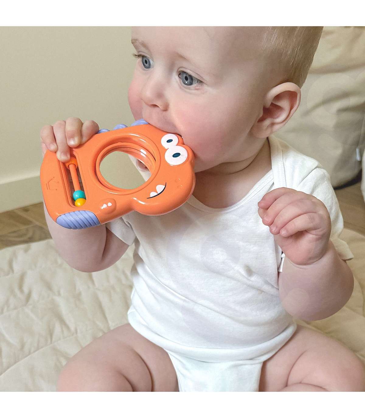 Värviline mänguasi dinosauruskujul brändilt Woopie on ideaalne valik väikelastele alates esimestest elupäevadest. Tänu pehmetele silikoonosadele ja teravate servade puudumisele on see ohutu ja sõbralik imikute pehmete käte jaoks. Mänguasi ühendab närimislelu, kõristi ja peegli funktsioonid, mis stimuleerivad lapse sensoorset arengut.