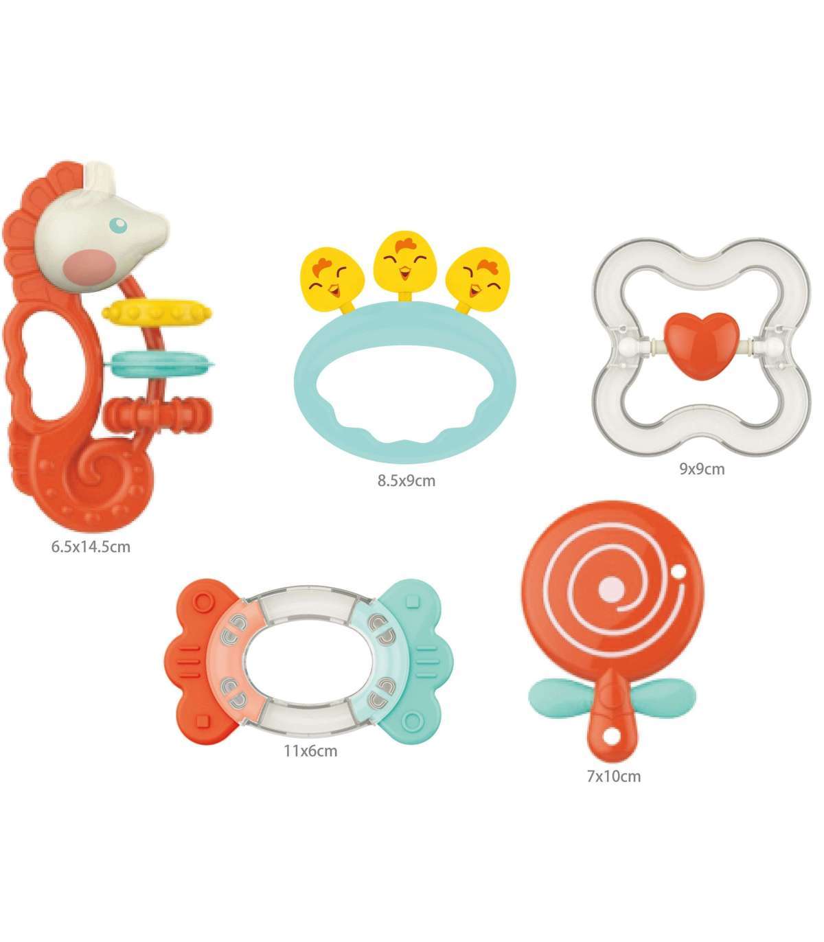 Närimis-kõristite komplekt lastele tootjalt WOOPIE sisaldab 5 erinevat värvilist elementi, mis on loodud selleks, et aidata last hammaste tulekul. Närimisosad mitte ainult ei leevenda valulikke igemeid, vaid ka stimuleerivad nägemise ja kuulmise arengut. Lisaks nõgus ja kumer kuju ning erinevad tekstuurid stimuleerivad puutetaju arengut.
