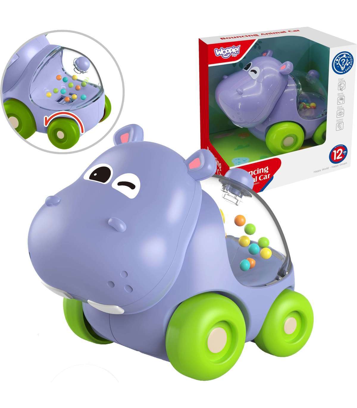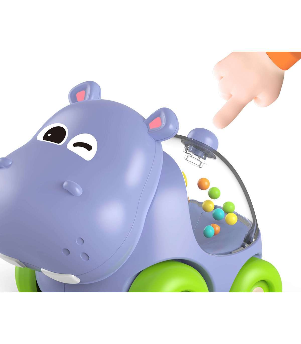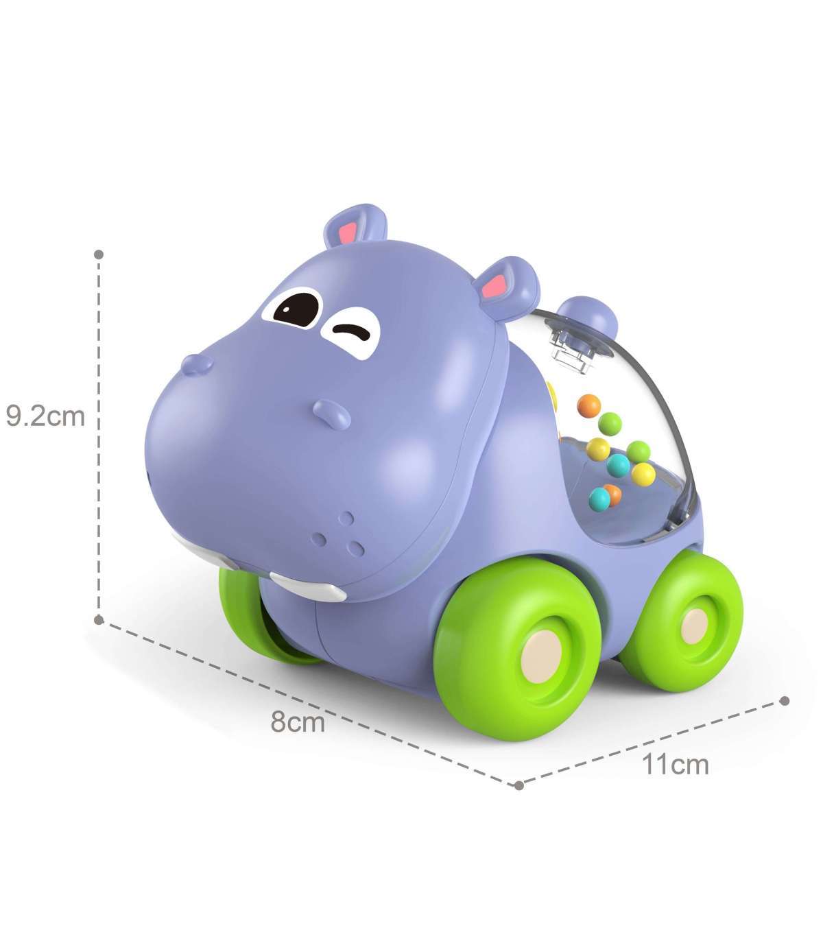 Helinmänguasi - Auto jõehobukujulise kujuga armas mänguasi brändilt WOOPIE! See eriline mänguasi on suurepärane viis julgustada last olema aktiivne, arendades samal ajal tema meeli. Kui väike laps mänguasja liigutab, hakkavad loomakese kõhus värvilised helmestikud sahisema ja keerlema, pakkudes nii kuuldavaid kui ka visuaalseid stiimuleid. Laps saab mänguasja lihtsalt lükata, mis motiveerib roomamist või kõndimist.