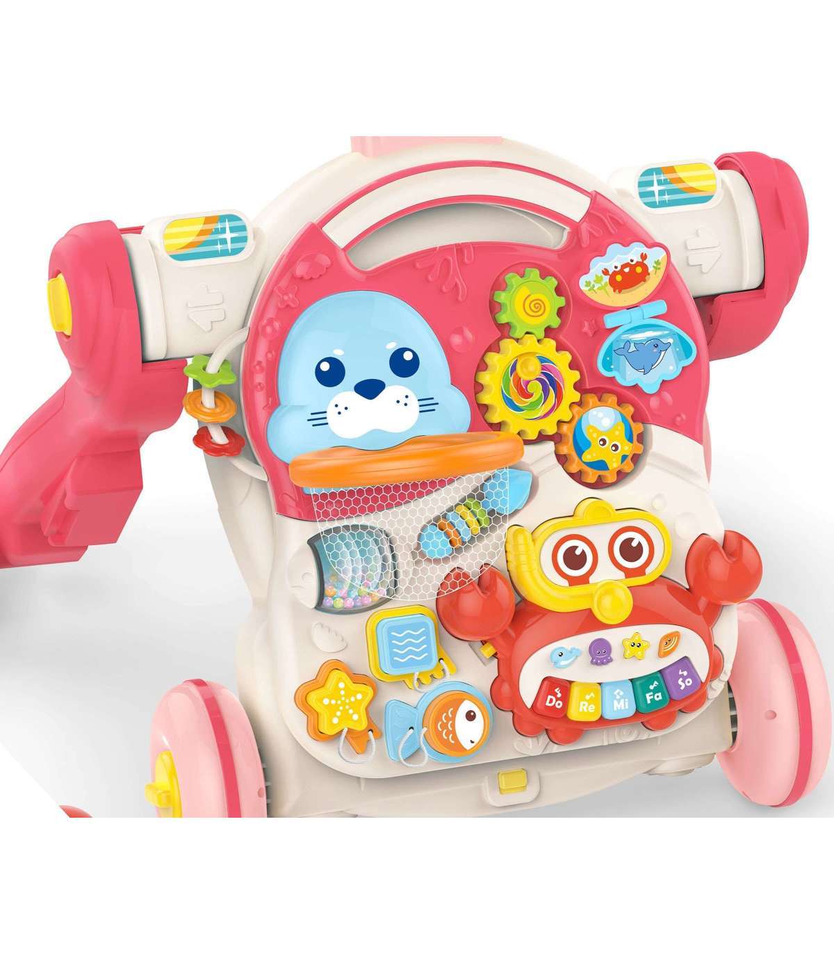 Mänguasi on tõeline üllatusi täis varamu, mida laps saab iseseisvalt avastada. Seda võimaldab mitme funktsiooni ühendamine ühes mänguasjas: tõukemänguasi, tõukeratas, sõiduk ja õppe-laud, mis tagab, et mänguasi ei muutu pikaks ajaks igavaks.