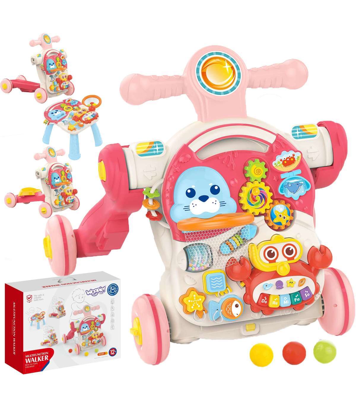 Avastage lõputud mänguvõimalused koos multifunktsionaalse interaktiivse sõiduki 4-ühes kaubamärgilt WOOPIE! See õpetlik tõukemänguasi saab teie väikese lemmikuks, järgides teda samm-sammult esimestest roomamise päevadest kuni iseseisva liikumiseni.