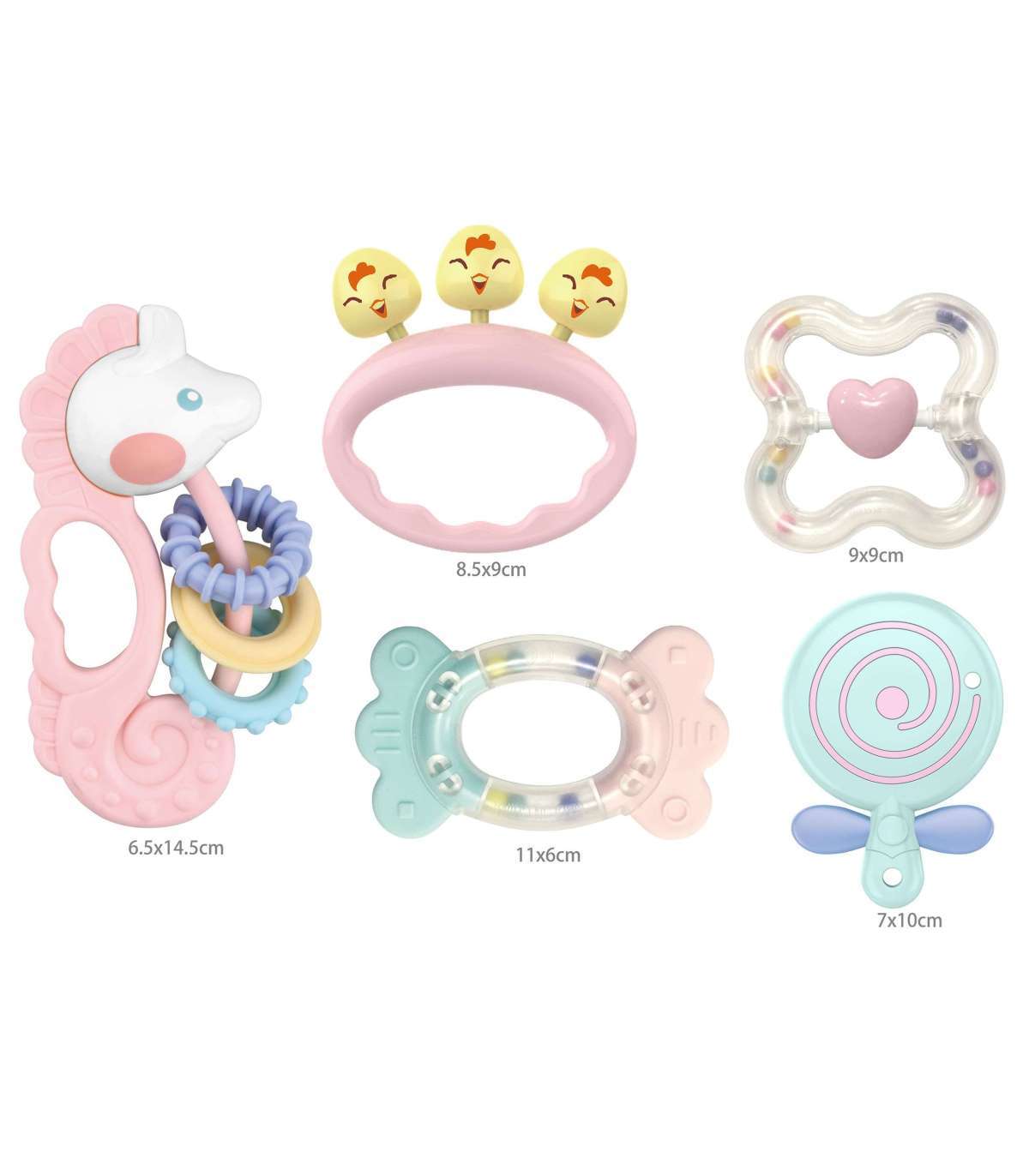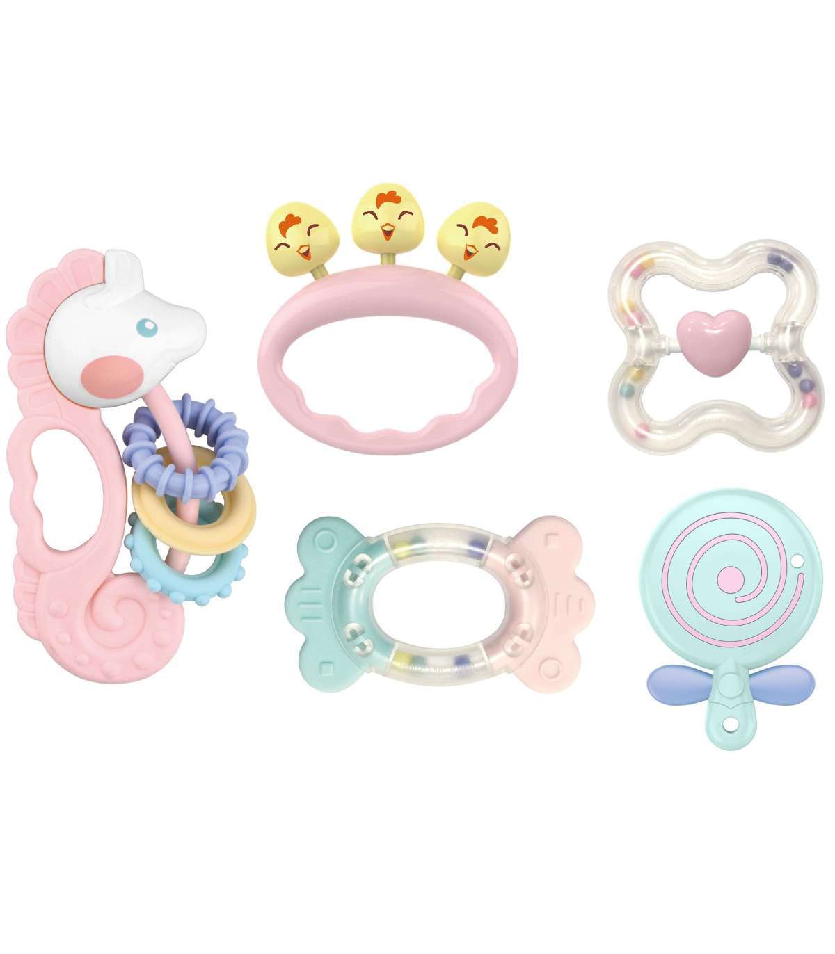 - Komplekt mitmest erinevast närimis- ja krõbistamismänguasjast