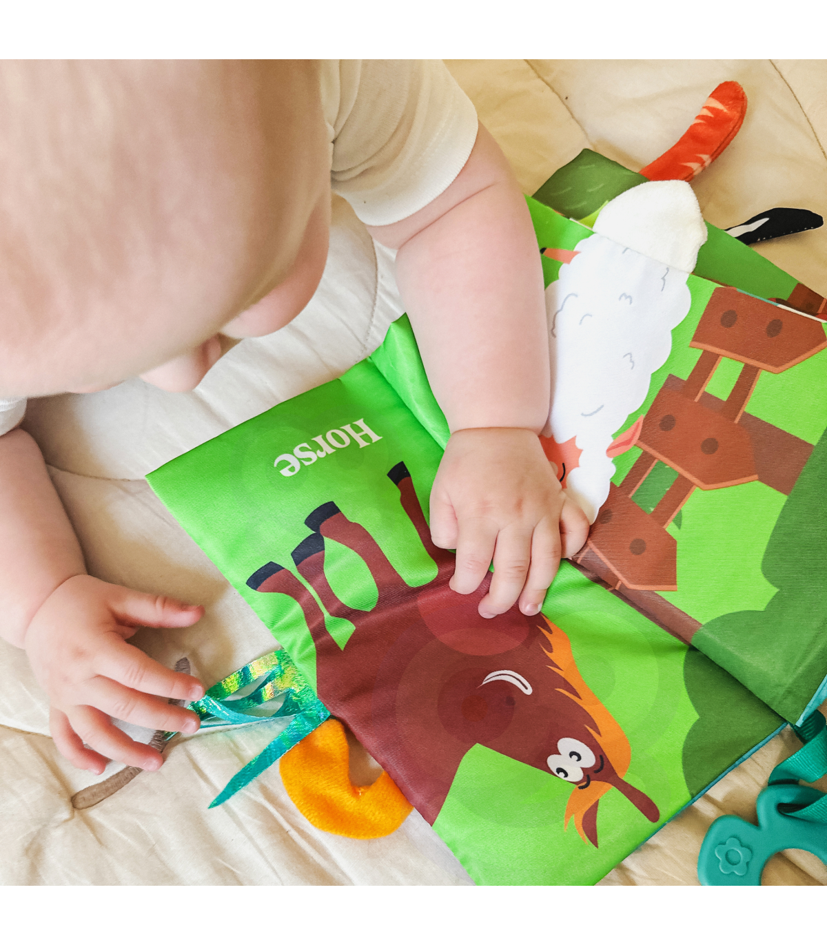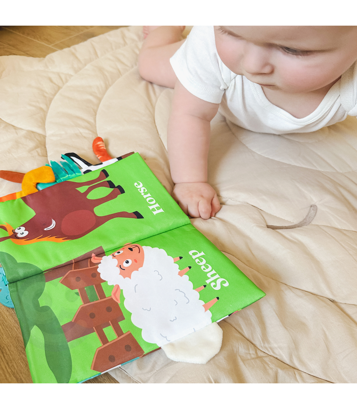 Raamat loomade sabadega brändilt WOOPIE sobib kõige väiksematele lastele. Krõbisevad ja väga pehmed puudutustundega lehed arendavad beebi meeli, täites sensoorset funktsiooni. Värvikad illustratsioonid treenivad nägemist ja tähelepanelikkust. Iga lehe äärest paistavad erinevate loomade sabad; neid haarates harjutab beebi nägemise-liigutuste koordinatsiooni. Raamat võib toimida kui käru või beebivoodi ripats, kinnitatuna takjakinnitusega.