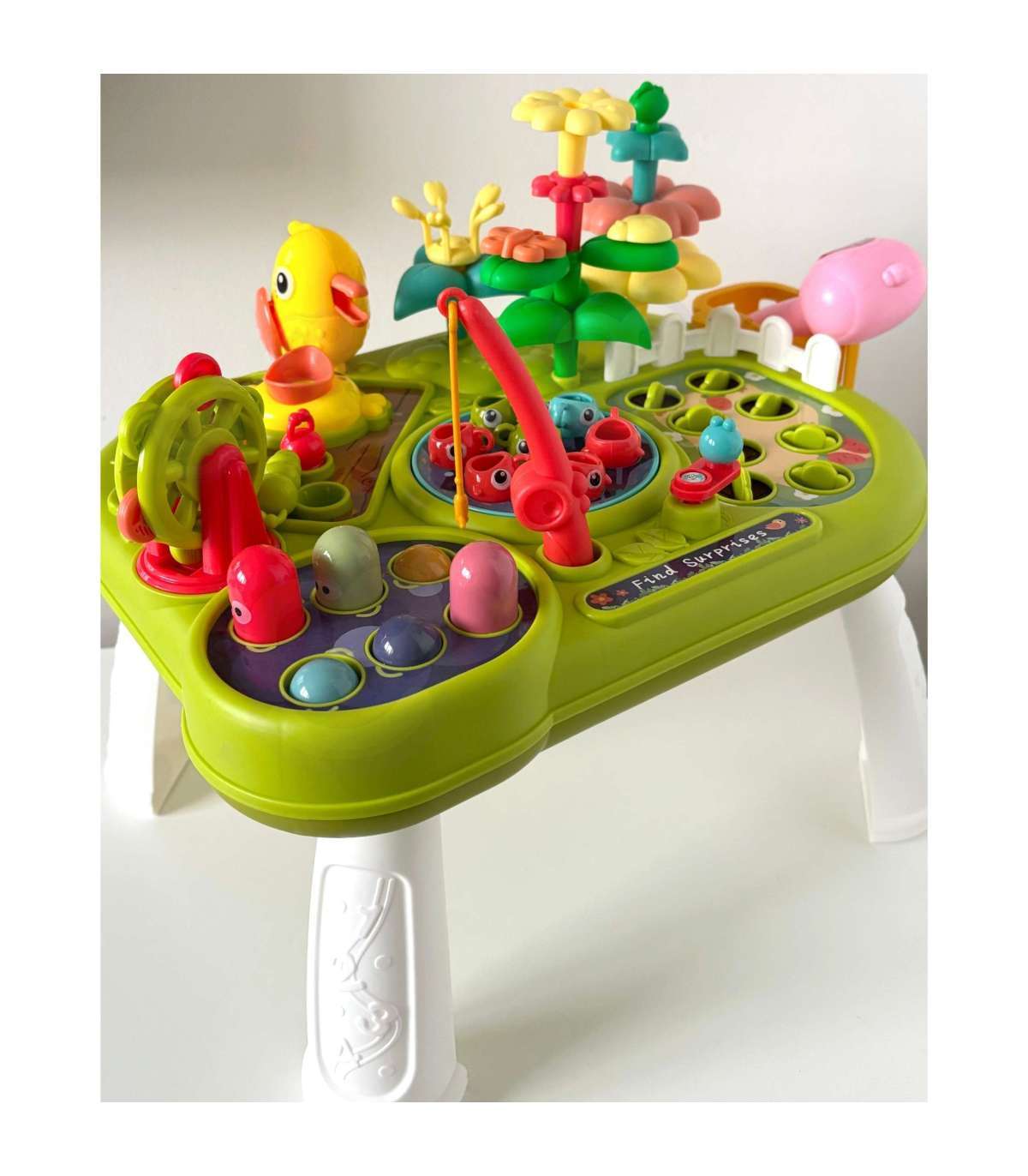 Interaktiivne hariv multifunktsionaalne lauamäng brändilt WOOPIE on ainulaadne mängude ja mänguasjade komplekt, mis pakub mitte ainult meelelahutust, vaid ka teie lapse oskuste arengut. Laud tänu oma mitmekülgsusele võimaldab lapsel mitmekesist mängu ja tagab, et mänguasi ei hakka igavlema, sest see pakub palju tegevusi: kalapüük, putukate peksmine vasaraga, aiamängud või mäng tikkpuuga putuka välja tõmbamiseks. Kõik need mängud võimaldavad lapsel rahulikult harjuda talle usaldatud ülesannetega, õpetavad kannatlikkust ning arendavad käelisi oskusi. Mängu ajal laps rahuneb ja arendab oma peenmotoorikat. Mänguasi pakub interaktiivset ja kaasahaaravat mängu, mis arendab lapse kujutlusvõimet, tähelepanuvõimet ja suhtlemisoskusi ning võimaldab tal uurida teda ümbritsevat maailma.