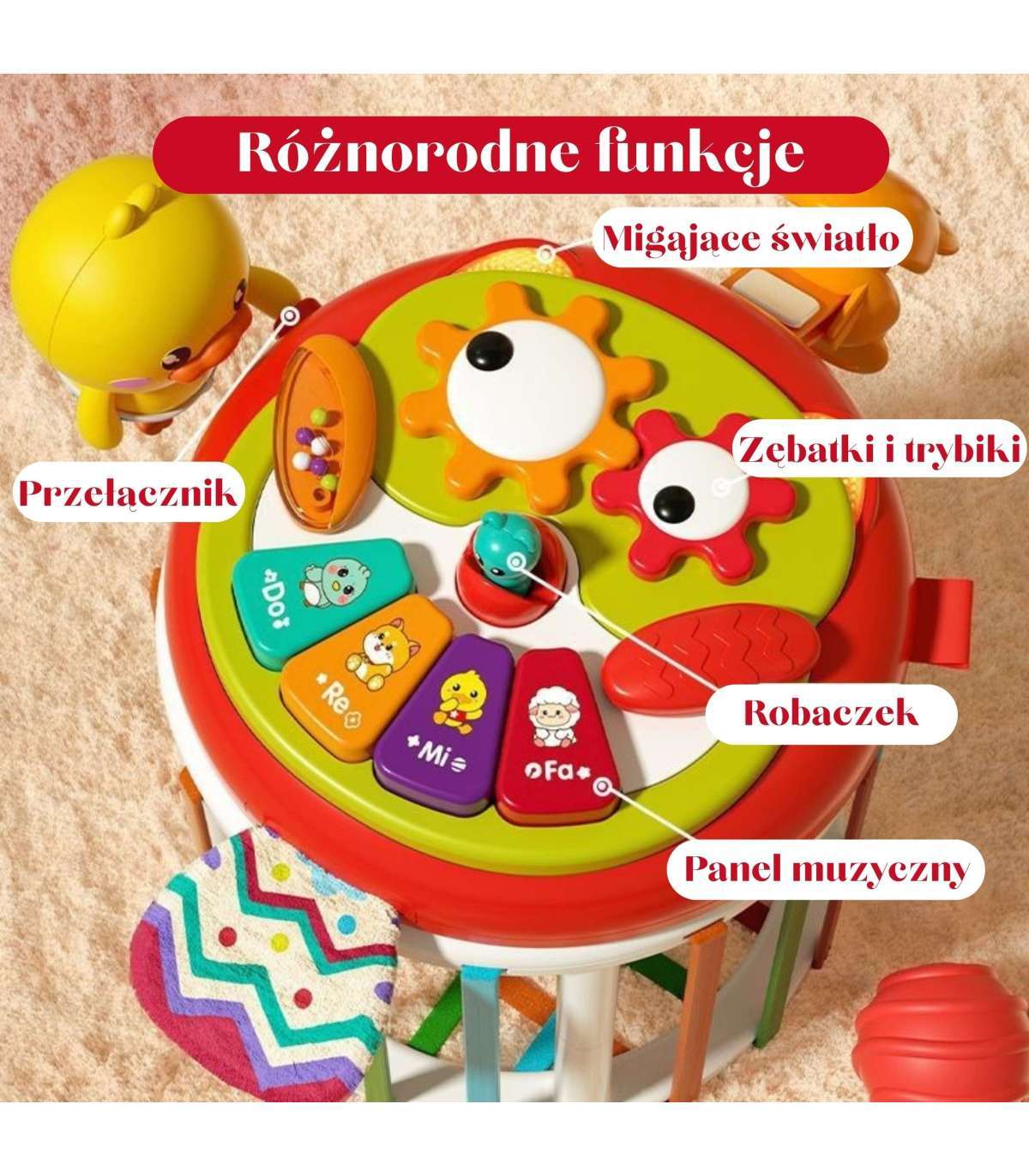 Interaktiivne hariduskuubik brändilt WOOPIE muusikapaneeli ja armsate loomakestega on ideaalne sensoorne mänguasi kõige väiksematele. Värvikad hammasrattad, rattad, peegel ja pehme ava kutsuvad uurima ja mängima. Komplekt sisaldab 7 klotsi erinevates kujudes ja tekstuurides, mis toetavad nägemis- ja puudutustaju arengu. Tugev konstruktsioon ohutust plastikust tagab vastupidavuse ja ohutu kasutamise. See on suurepärane kingiidee, mis ühendab õppimise, mängu ja lapse peenmotoorika arengu.