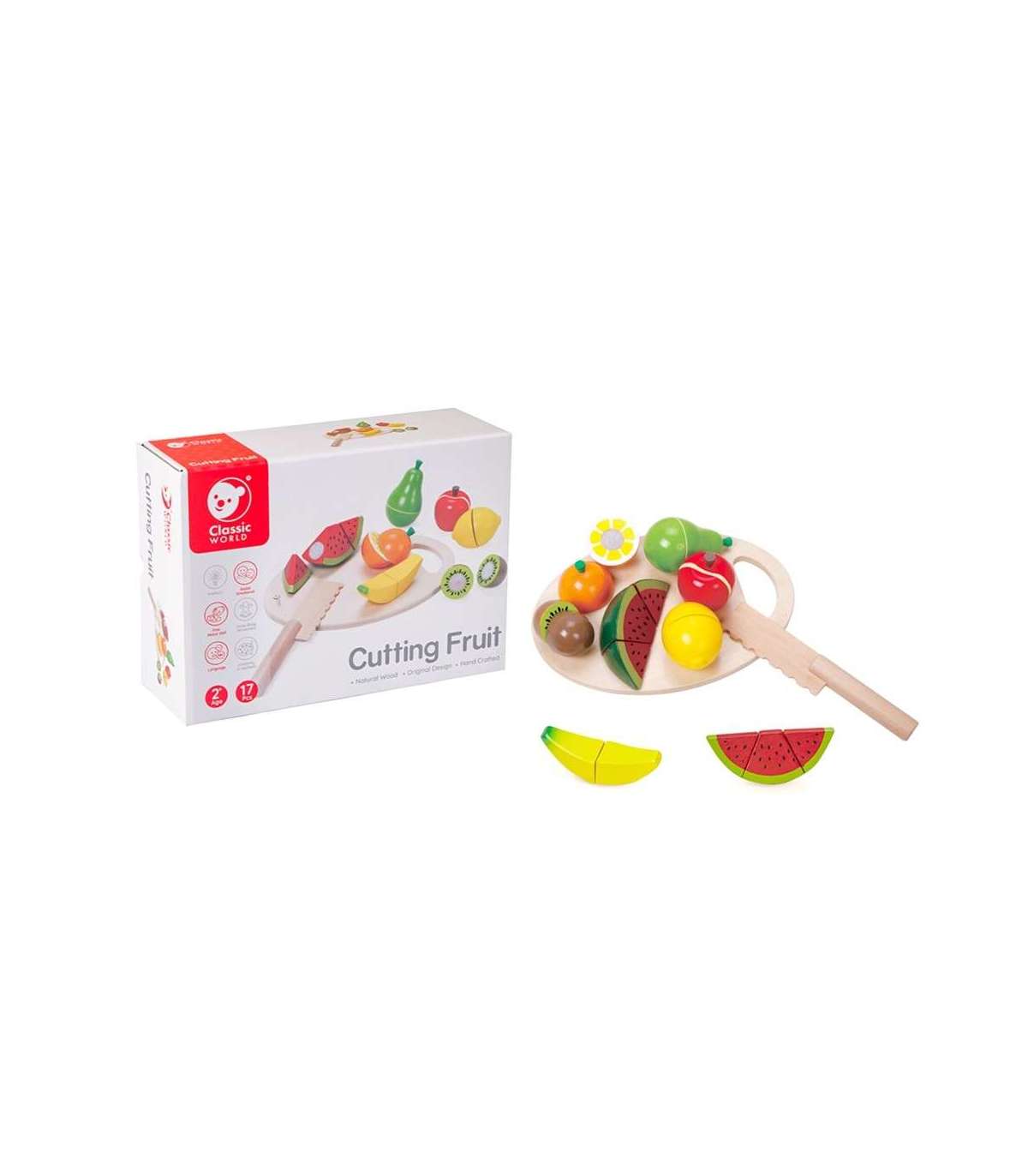 Puidust puuviljad, mida saab lõigata takjapaelaga, brändilt Classic World, on ideaalne komplekt väikestele kokkadele, kes armastavad mängida toidu valmistamist. Tänu puidust puuviljadele, mis on ühendatud takjapaelaga, saab laps neid “lõigata” noa abil ja seejärel uuesti kokku panna, mis annab lõputud mänguvõimalused. Komplekt õpetab puuviljade, kujulite ja värvide tuvastamist ning toetab ka peenmotoorika arengut. Kõrge kvaliteediga puit ja ohutud värvid tagavad vastupidavuse ja ohutuse kasutamisel.