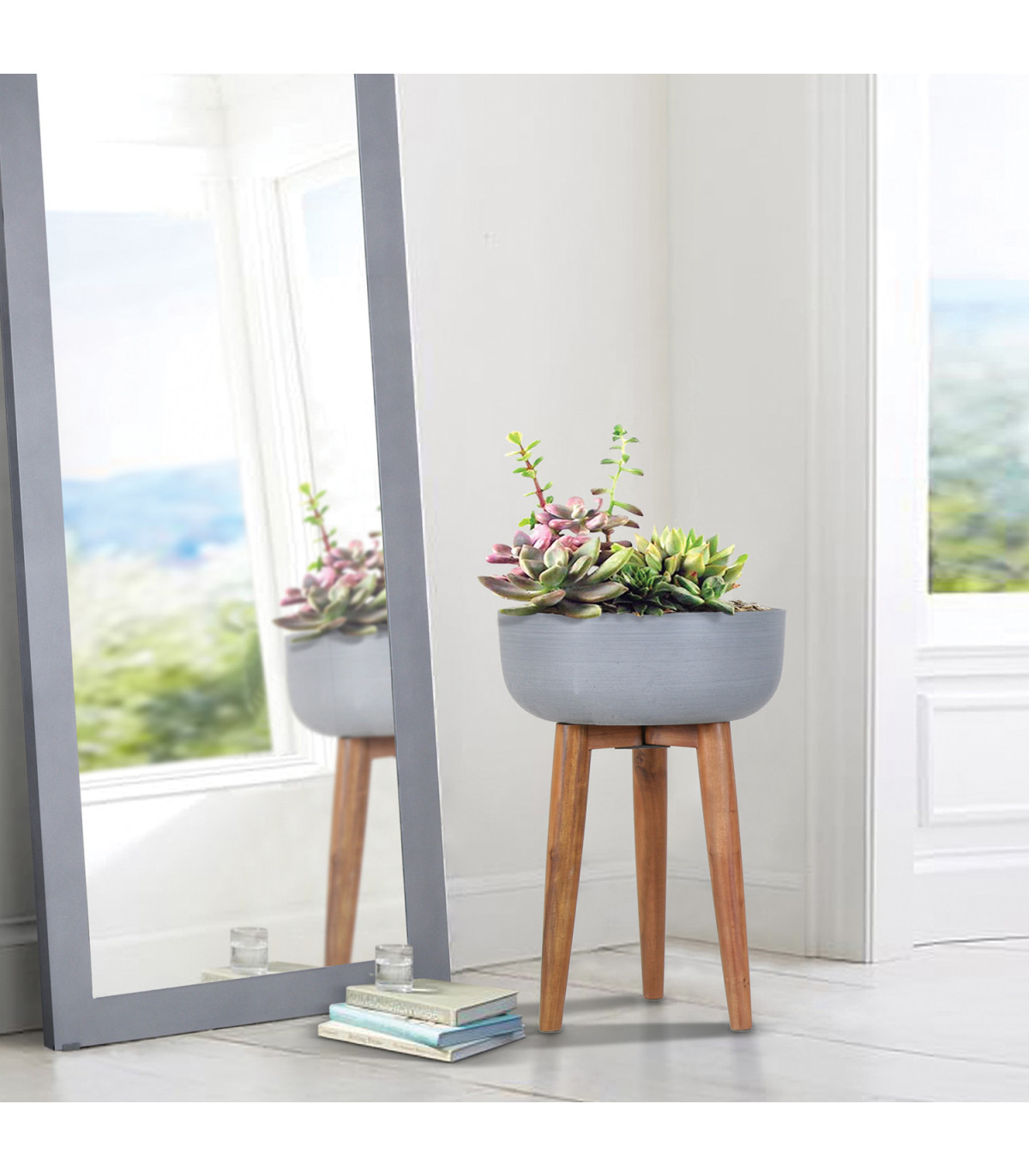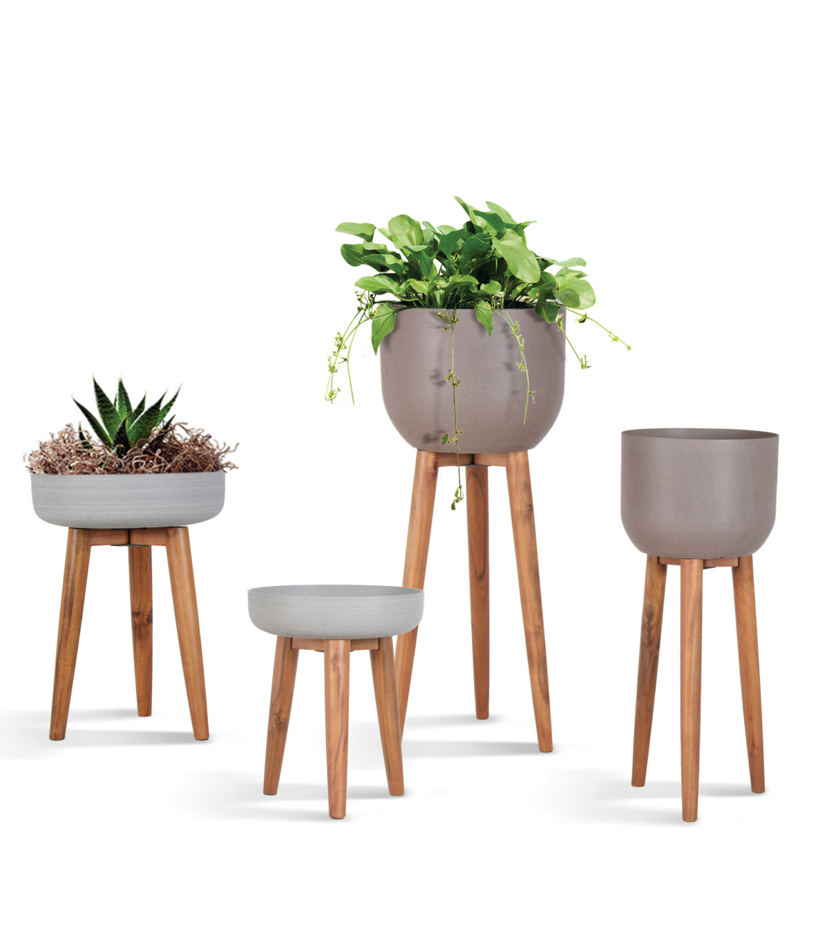 Lillepott SANDSTONE puidust jalgadega D40xH56,5cm, pruun