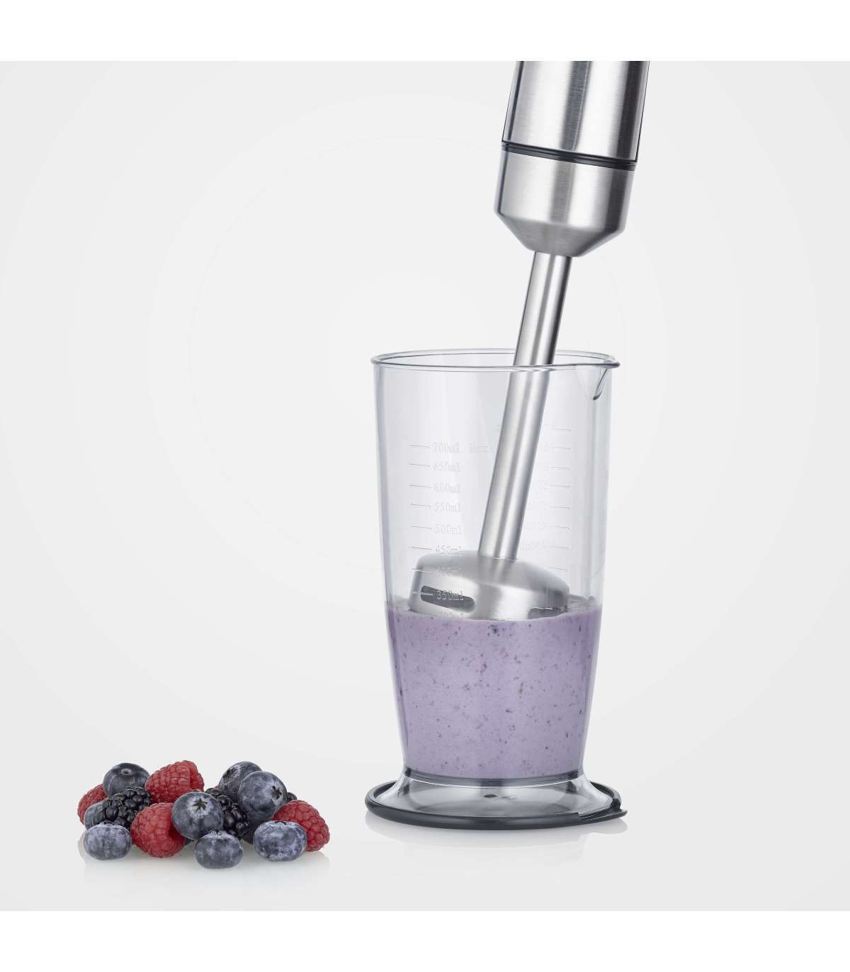 Võimas 1000 W blender kvaliteetse 4 teraga roostevabast terasest noaga, mis tagab peened segamistulemused ka kõige kõvemate koostisainetega.