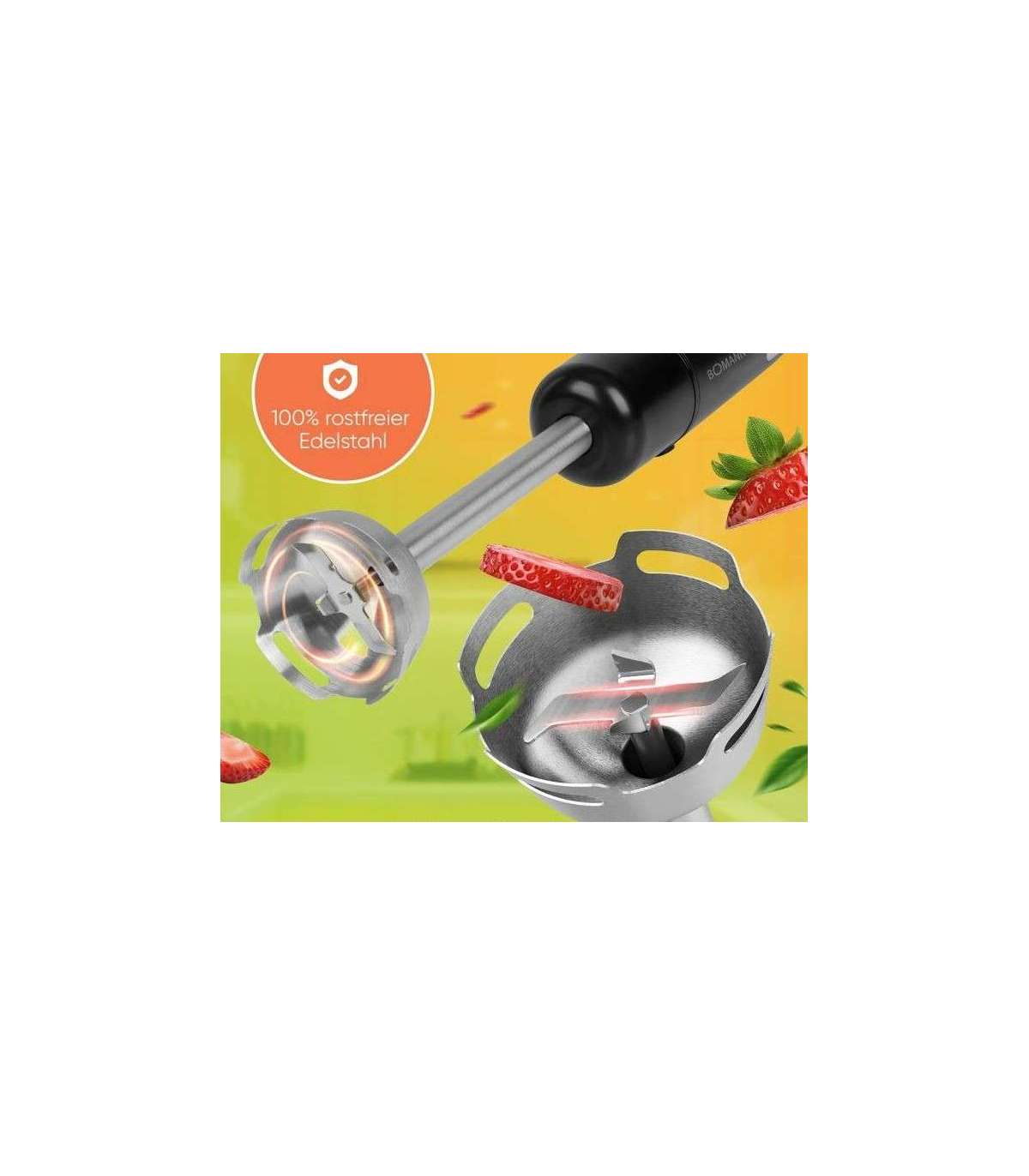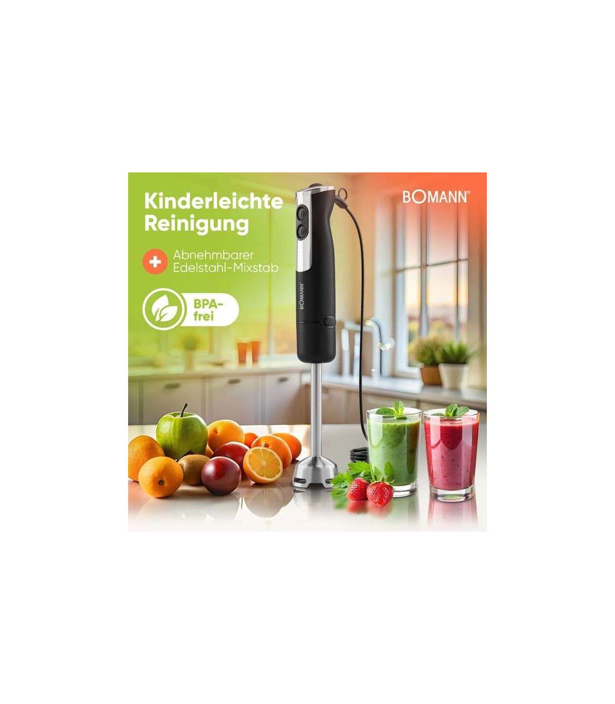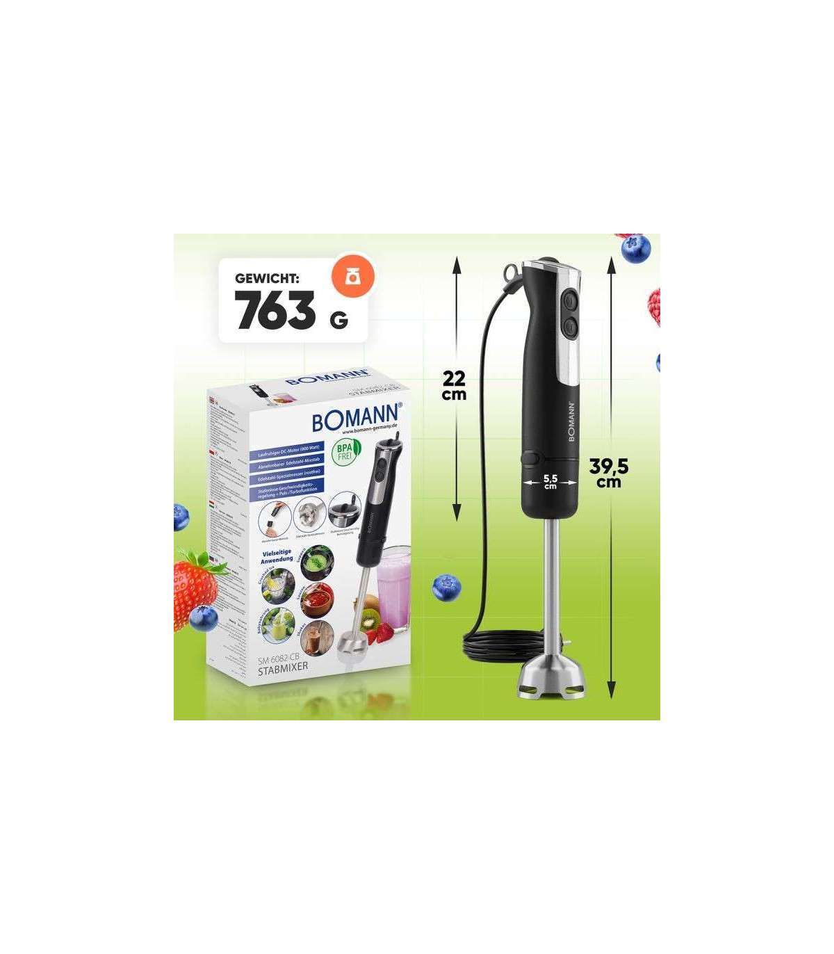 Bomann® metallvarrega saumikser SM6082CB avaldab muljet oma 800W võimsuse ja kvaliteetse roostevabast terasest teraga, püreestades ja hakkides vaevata isegi kõvasid koostisosi.