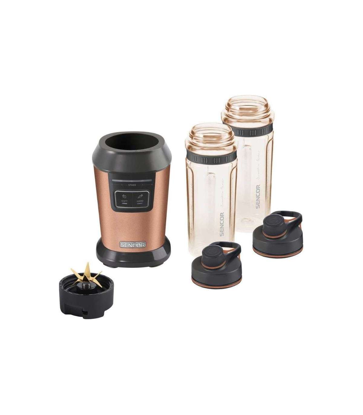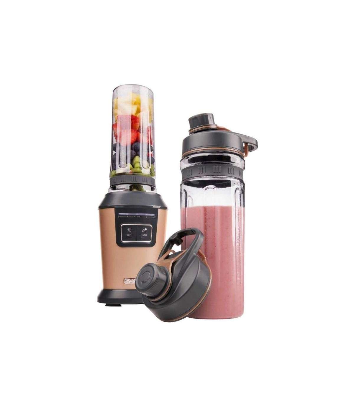 Komplektis on kaks eemaldatavat 0,6 liitrist pudelit, mis võimaldavad võtta kaasa tervislikke smuutisid reisile, matkale, tööle või rattasõidule.
