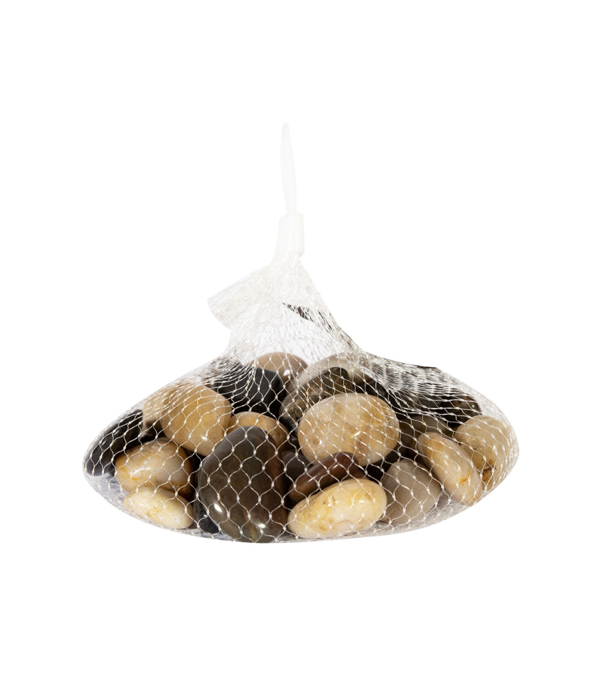 Naturaalsed poleeritud looduslikud kivid võrgust kotis.
