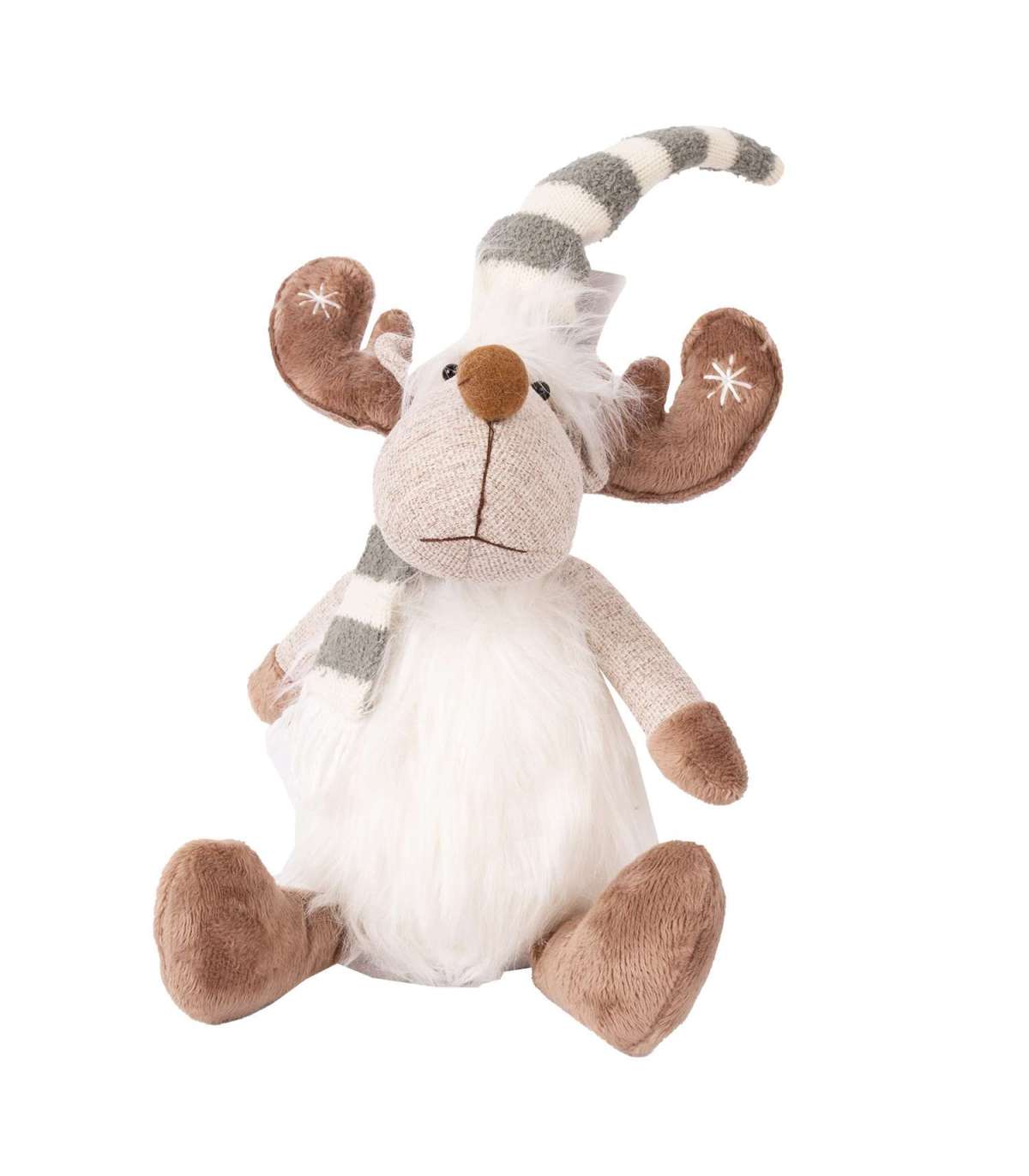 Põder AMOY 24x14xH13cm, beež-valge, triibulise mütsi ja salliga.