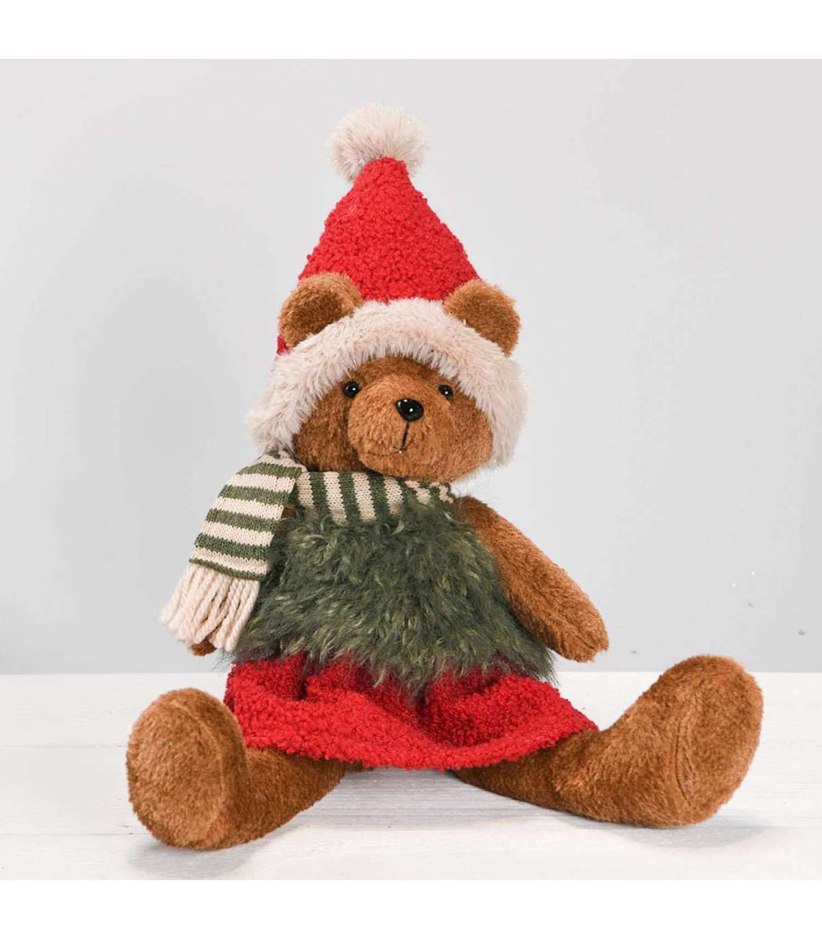 Dekoratsioon FUN SANNA, istuv jõulukaru päkapikumütsiga, tüdruk.