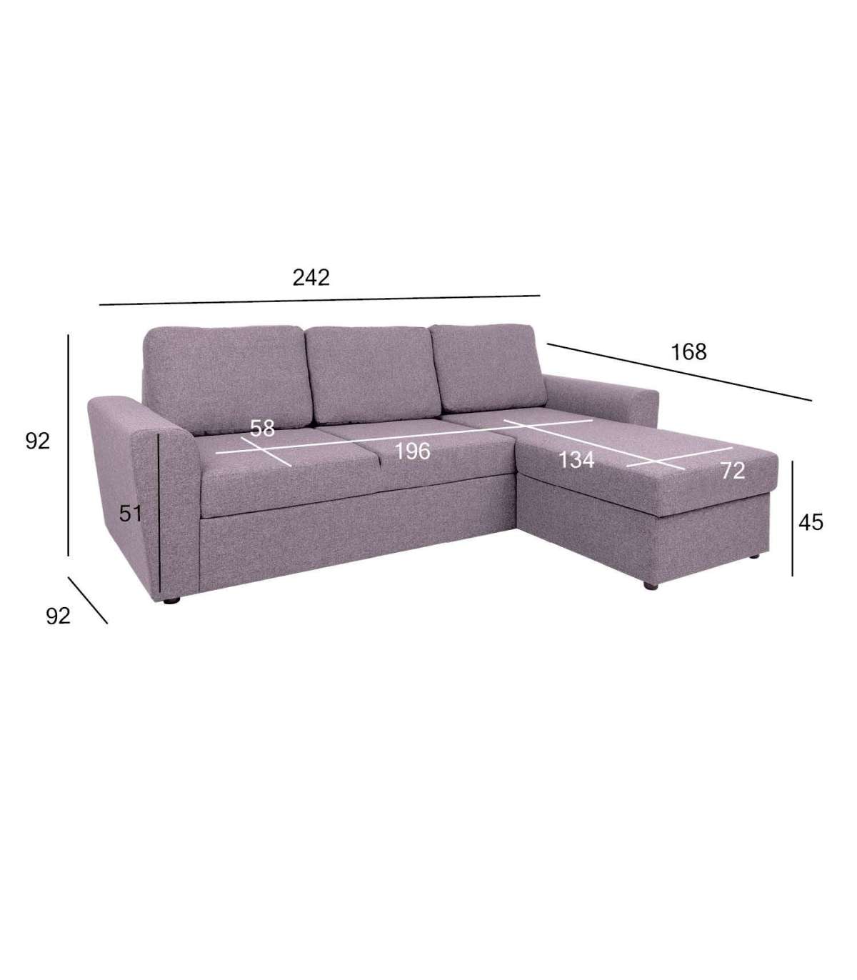 Diivani üldmõõdud on 242x168/92xH92cm. Diivani kõrgus raami ääreni 73cm. Istme kõrgus 45cm. Istme sügavus 58cm. Seljatoepadja mõõdud on 64x48x18cm. Magamisosa mõõdud avatuna 147x196cm. Diivani jalad on mustast plastikust.