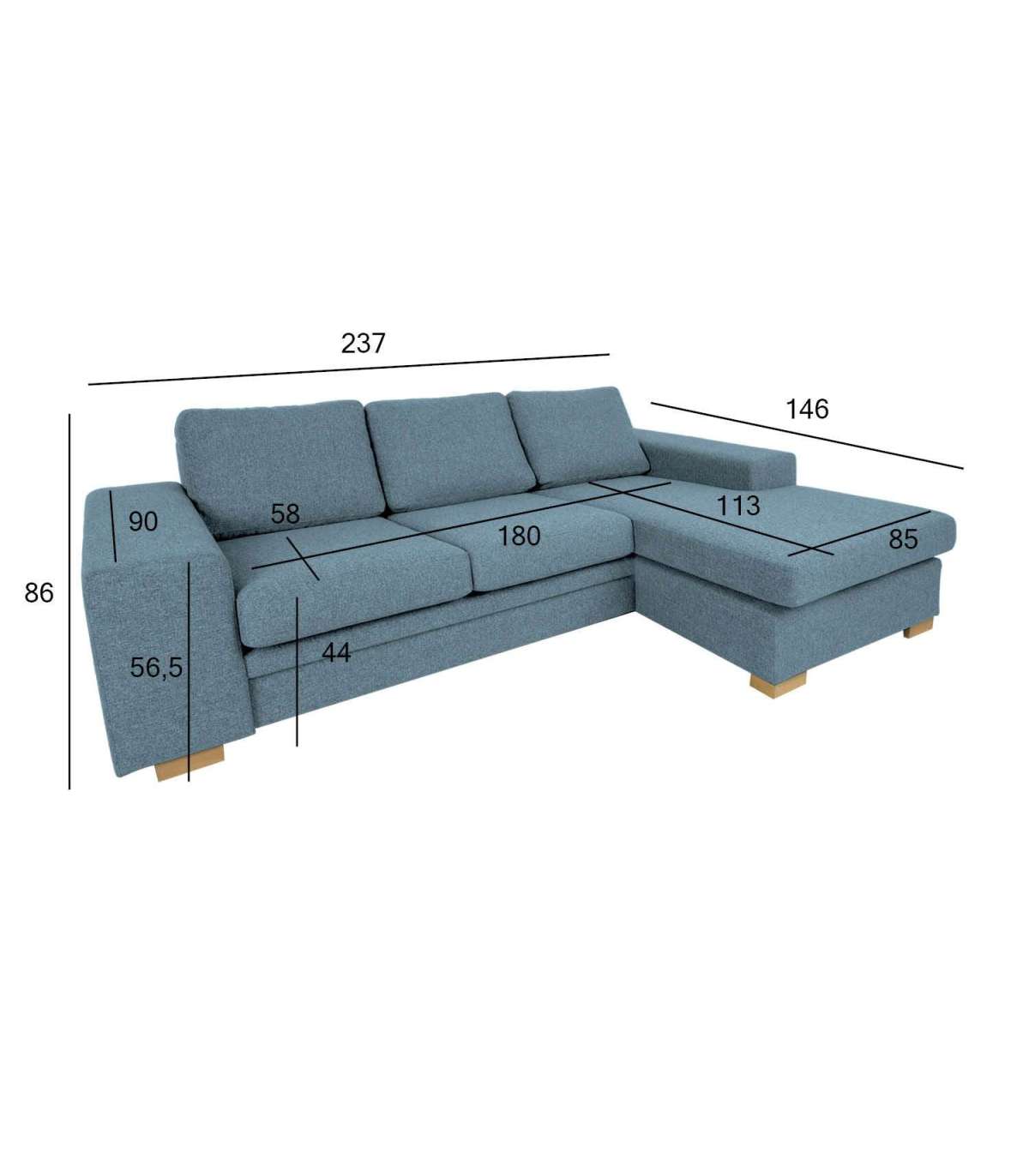 Nurgadiivan DAGMAR 237x90/146xH86cm, helesinine