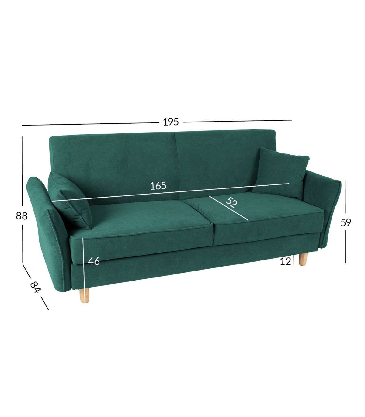 Diivanvoodi ROSANNA pesukastiga, roheline. Diivani kattematerjal: 100% polüestersamet. Karkass: puit, vineer. Polsterdus: polüuretaanvaht. Diivanil on lihtne click-clack mehhanism. Istme all on panipaik. Diivani üldmõõdud on 195x84xH88cm, istme laius 165cm, istme sügavus 52cm, istme kõrgus 46cm. Käetoe kõrgus maast 59cm. Diivanil on heledad puidust jalad H12cm. Magamisosa mõõdud avatuna on 165x105xH46cm. Kandevõime 300kg.