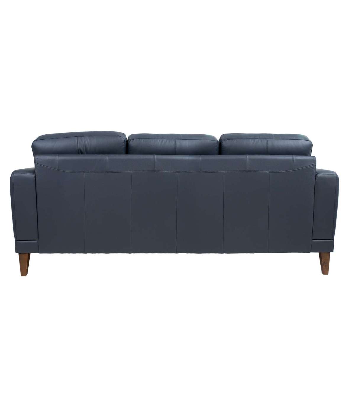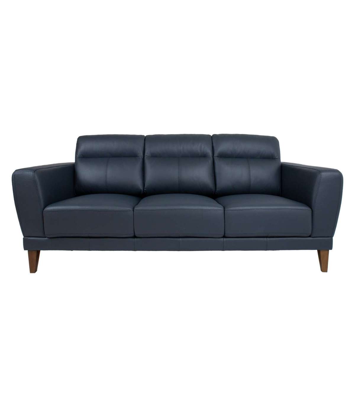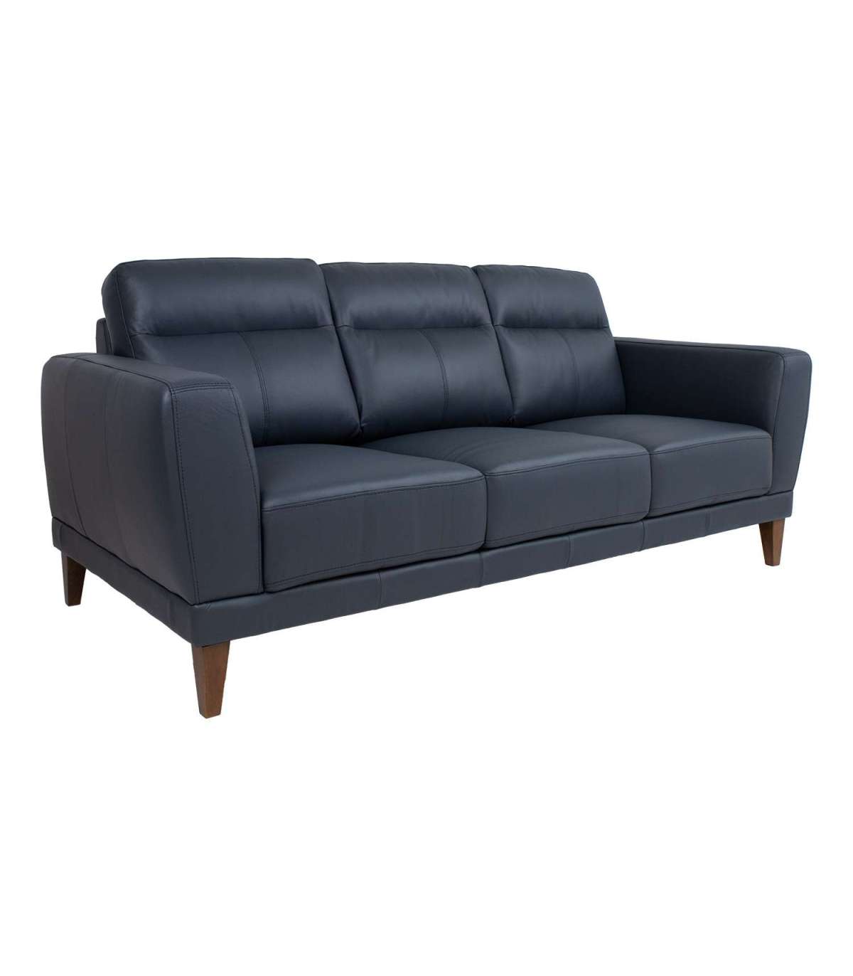 Diivan BARTEK 3-kohaline, sinakasmust naturaalne nahk. Väärikas ja stiilne nahkdiivan on jätkusuutlik valik. Ajatu disainiga diivan sobib hästi erinevas stiilis interjööri ja korralikult hooldatud naturaalne nahk peab kaua vastu. Diivani karkass on valmistatud täispuidust ja MDF plaadist. Istumismugavuse tagab sik-sak vedrustus ja vastupidavast poroloonist polsterdus (PU 24/33 kg/m³). Diivan on üleni kaetud naturaalse nahaga. Diivani üldmõõdud on 209,5x96xH92cm. Istme kõrgus 46,5cm. Istme sügavus 56cm. Diivani jalad on valmistatud heledast täispuidust. Jalgade kõrgus on 15cm.
