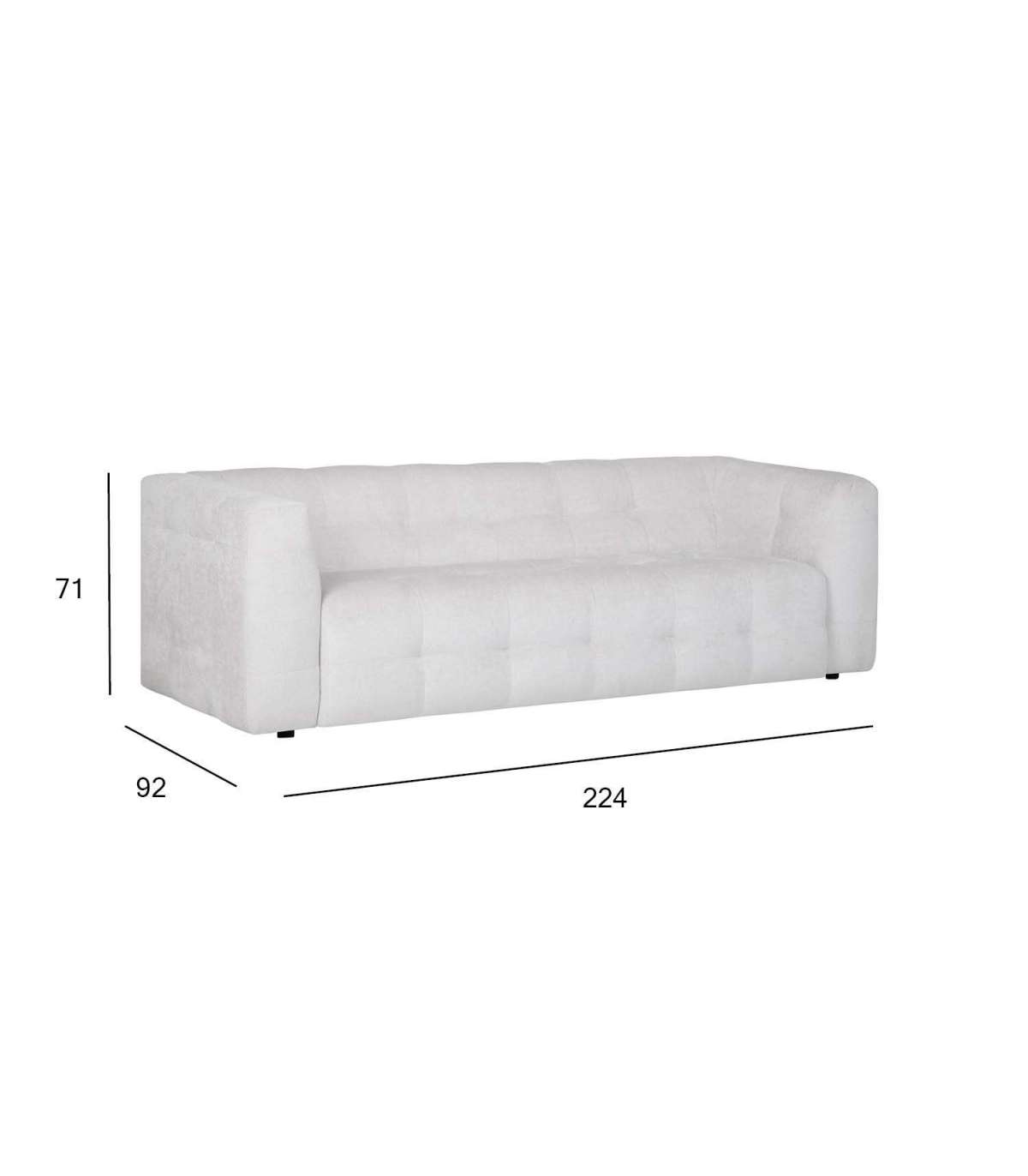 Iste on valmistatud poroloonist, kaetud polüesterkangaga. Katted pole eemaldatavad. Käetoe pealne on kaetud 50mm porolooniga. Tootel on siksak vedrustus. Raam on valmistatud täispuidust, vineerist, puitlaastplaadist ja suure tihedusega puitkiudplaadist, kaetud polüesterkangaga. Jalad on valmistatud plastikust, D5xH3,5cm. Istme kõrgus on 44cm, istme sügavus on 61cm. Mõõdud on 224x92xH71cm. Valmistatud Euroopas.