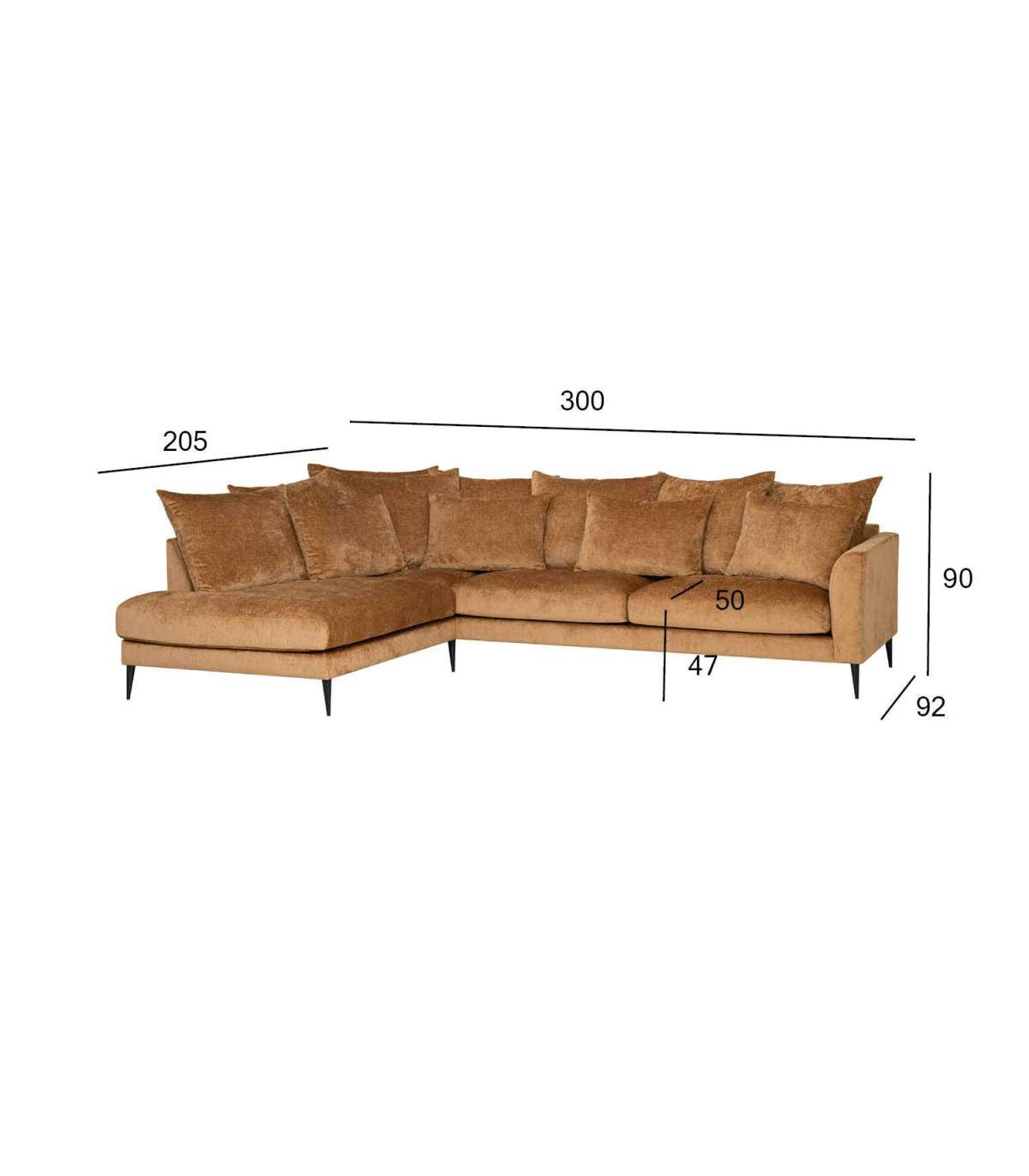 Nurgadiivan LARTES vasak nurk, pruun, 300x205/92xH90cm