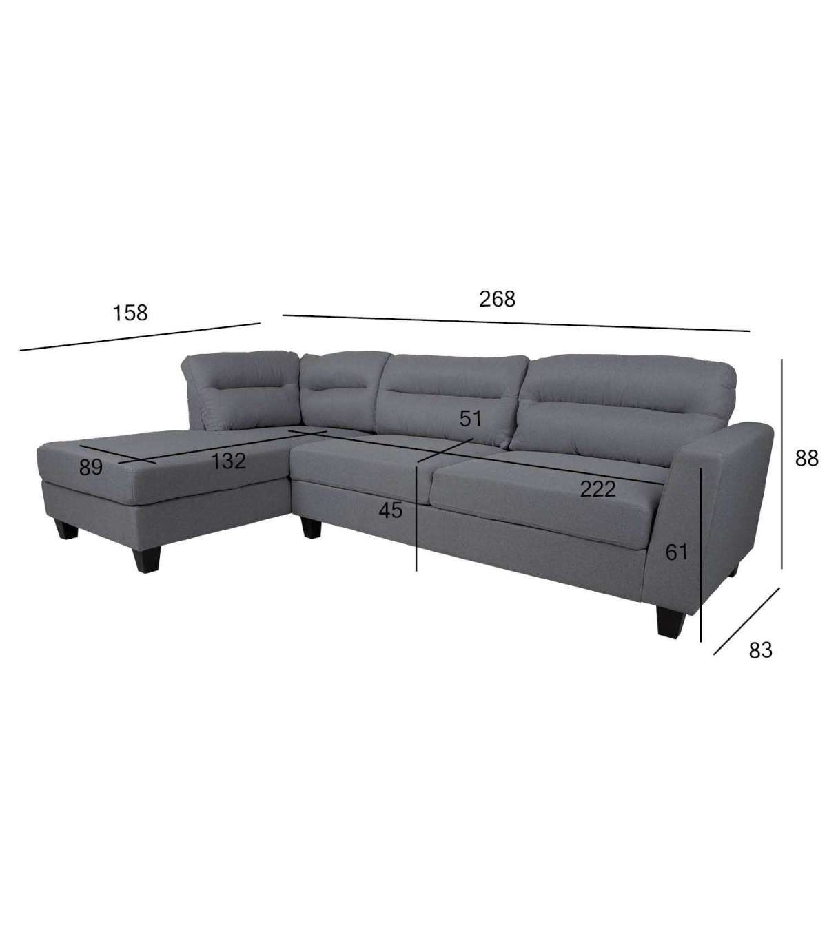 Nurgadiivan HELSINKI VN 268x158/83xH88cm, tumehall