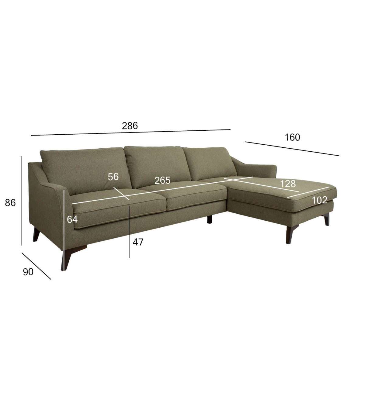 Nurgadiivan BIRGIT PN 286x90/160xH86cm, oliiviroheline
