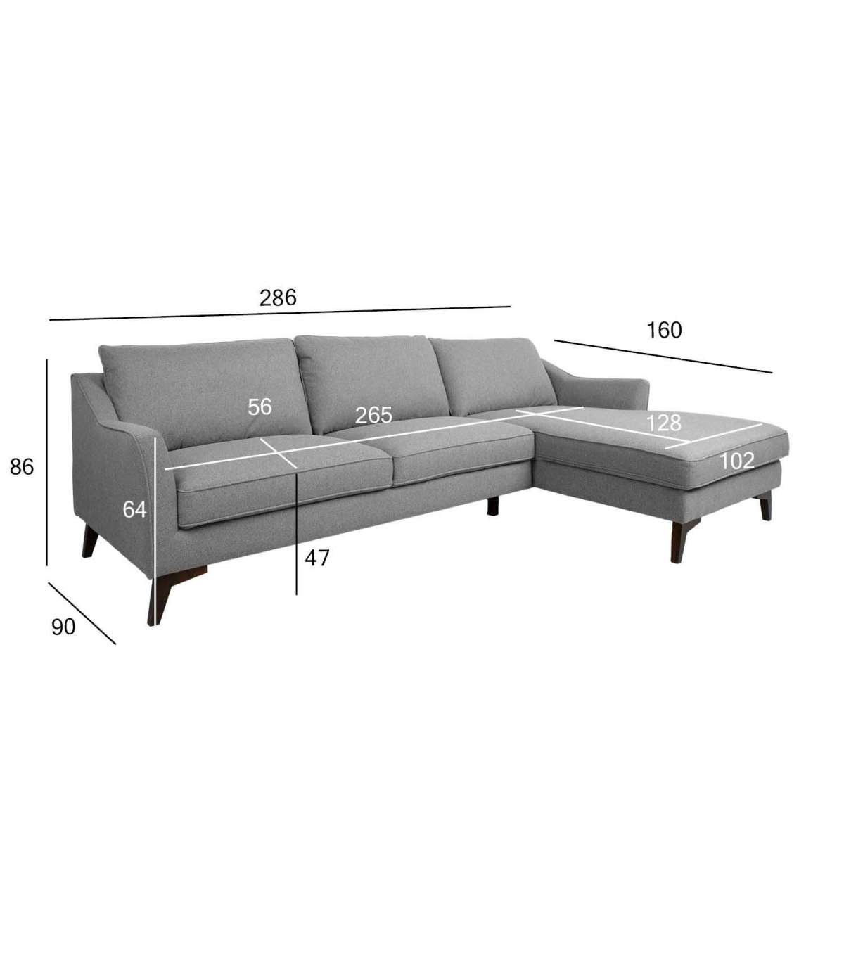 Nurgadiivan BIRGIT parem nurk, hall. Diivani karkass on valmistatud liimpuidust, vineerist ja MDF plaadist. Istumismugavuse tagab sik-sak vedrustus ja vastupidavast poroloonist polsterdus (PU 30kg/m³). Lahtised seljatoepadjad on täidetud mahulise polüesterkiuga. Diivan on üleni kaetud polüesterkangaga. Seljatoepadjad kinnituvad seljatoe külge takjaribaga. Diivani üldmõõdud on 286x90/160xH86cm. Istme laius 177+88cm, istme sügavus 56/128cm, istme kõrgus 47cm. Käetoe kõrgus maast 64cm, käetoe laius 10cm. Seljatoepadja mõõdud 89x50x20cm / 3tk. Diivanil on tumedad puidust jalad H18cm.
