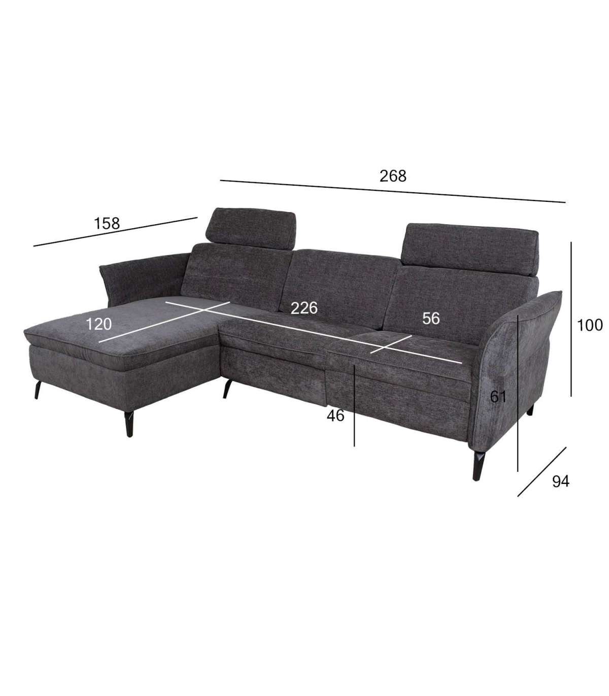 Nurgadiivan DAYTON VN, elektriline recliner 268x157/94xH100cm, tumehall