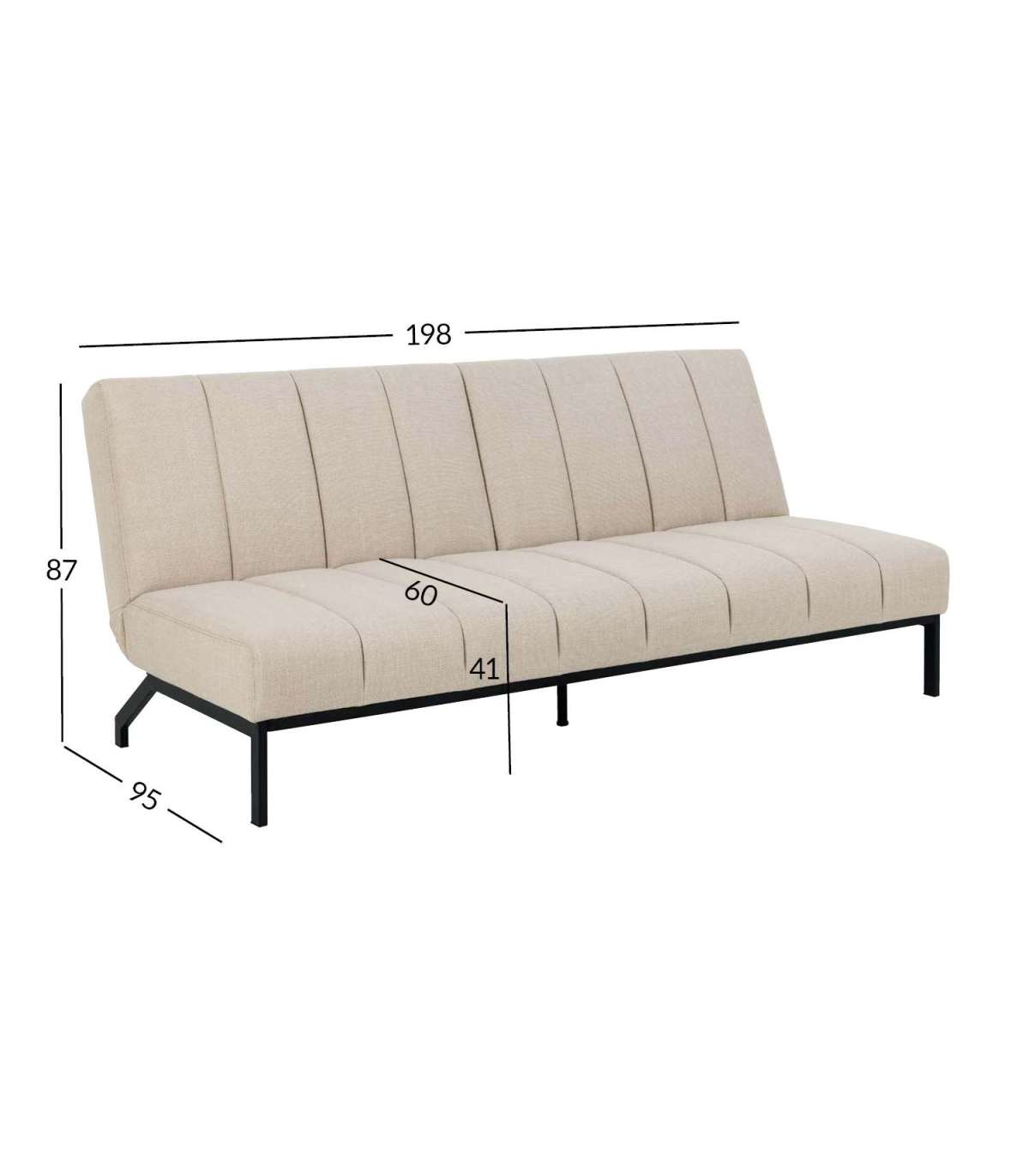 Elegantne diivanvoodi on praktiline lahendus. Diivan on kaetud kahetoonilise efektiga beeži kangaga ja kaunistatud vertikaalsete õmblustega. Vajadusel saab diivani tänu lihtsale süsteemile hõlpsasti voodiks muuta. Mõõdud on 198x95xH87cm. HOOLDUS: Hooldus piirdub tolmuimemise ja plekieemaldusega. Plekkide eemaldamisel tuleb olla ettevaatlik. Katsetage plekieemaldajaid esmalt vähem nähtaval alal. Ärge kunagi kasutage lahusteid. Ärge asetage mööblit otsese päikesevalguse kätte. Alus: Kasutage igapäevaseks puhastamiseks seebiveest kuivaks väänatud lappi. Rooste vältimiseks pühkige pind kuivaks. Ärge hõõruge pinda kõvade esemetega.