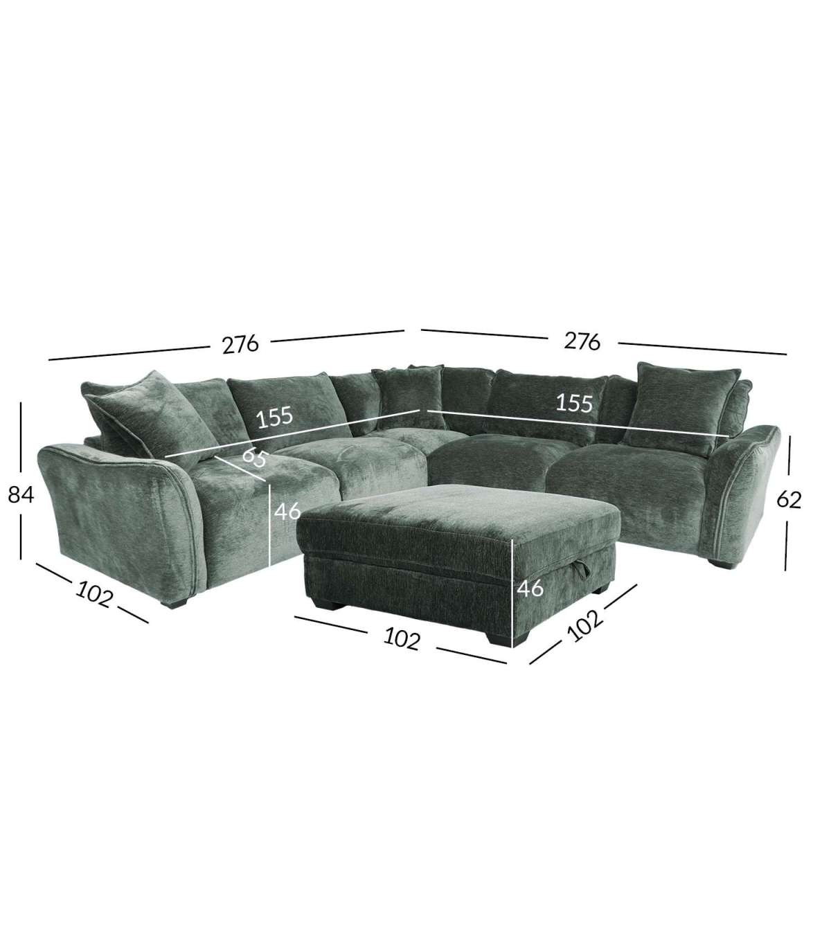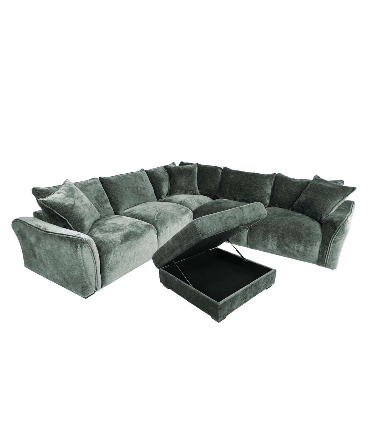 Luksusliku sametise kangaga kaetud pehme ja mahukas nurgadiivan on tõeline pilgupüüdja igas elutoas. Diivani juurde kuulub funktsionaalne panipaigaga tumba.