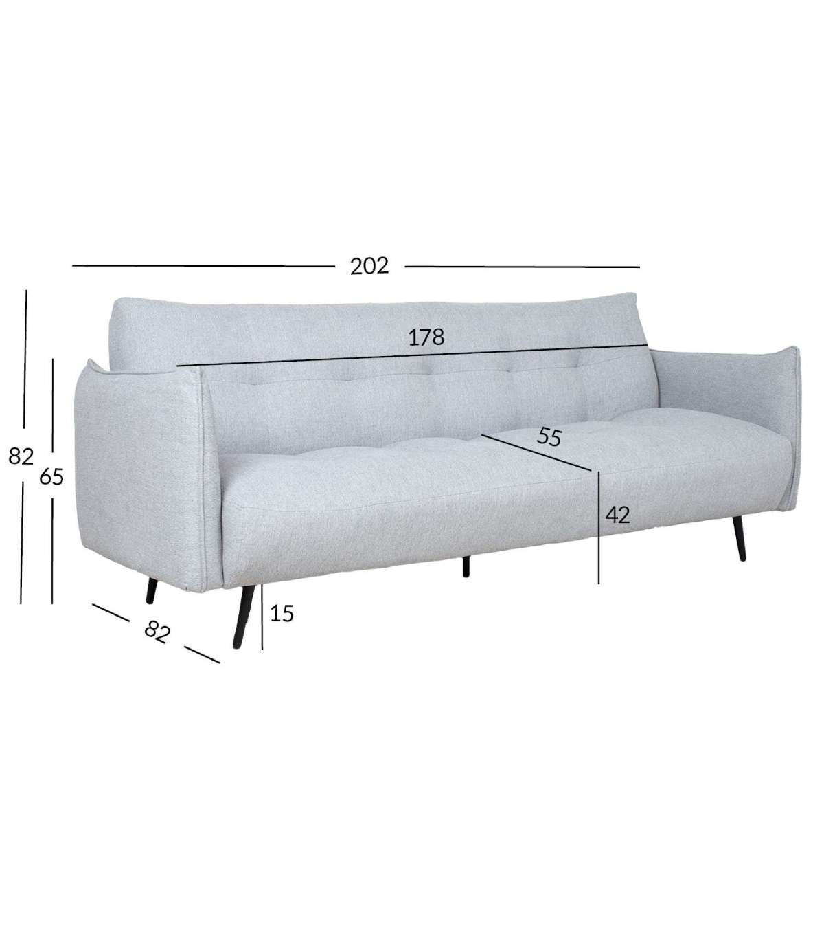 Diivani üldmõõdud on 202x82xH82cm. Istme laius 178cm, istme sügavus 55cm, istme kõrgus 42cm. Käetoe kõrgus maast 65cm.