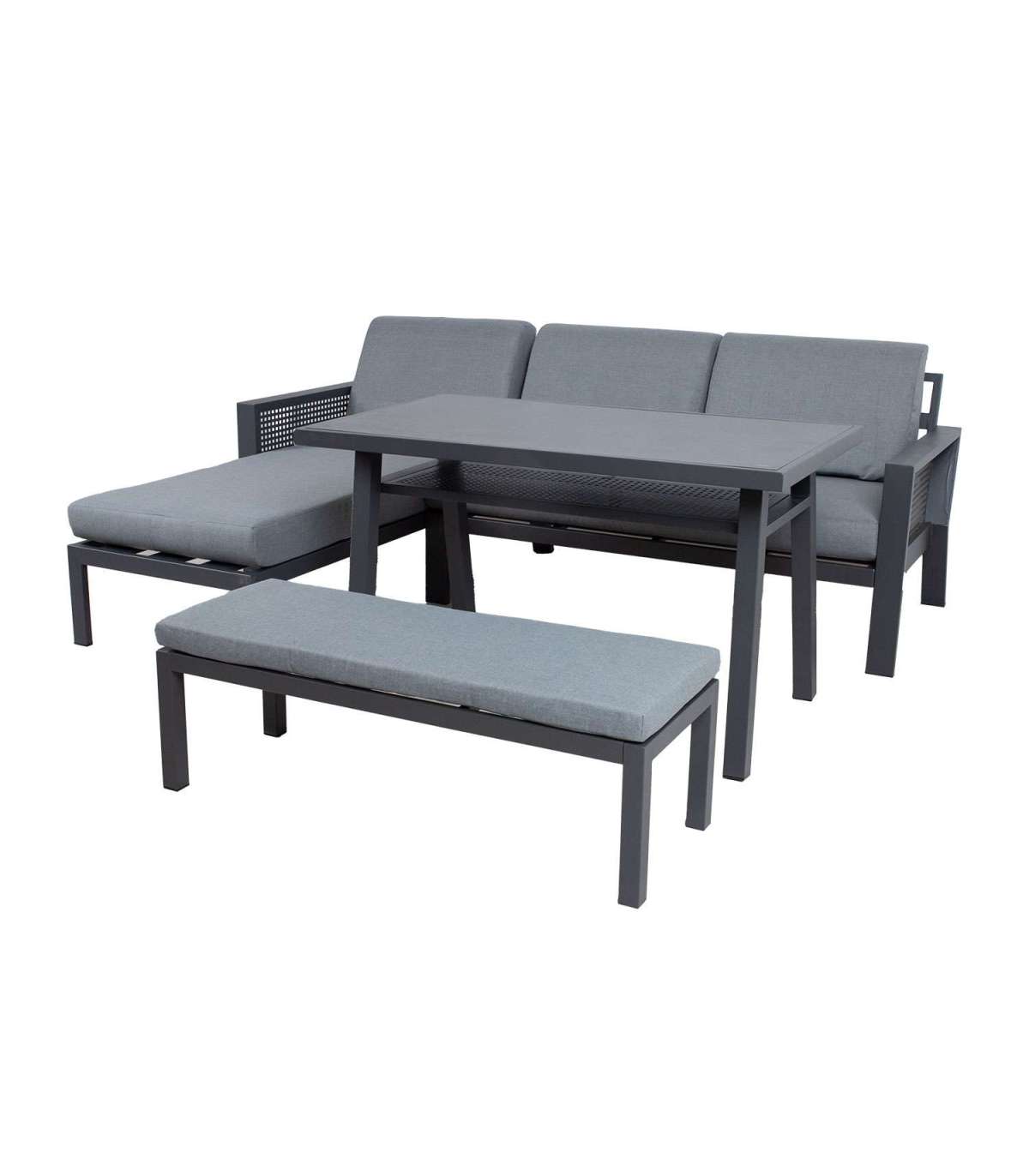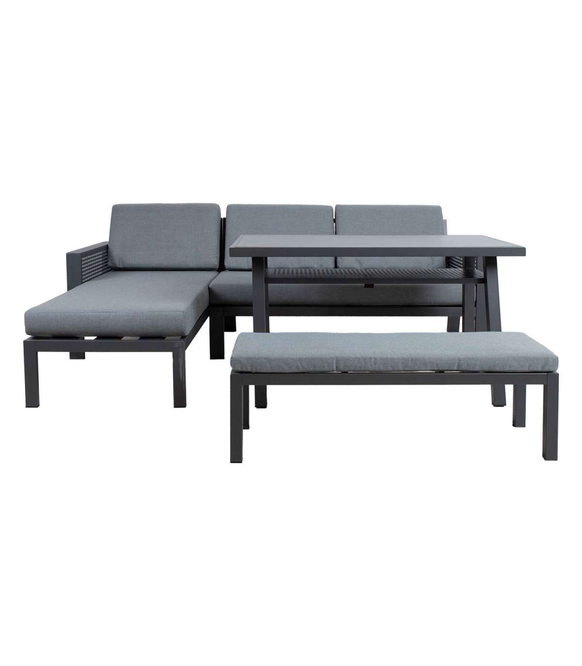 Aiamööblikomplekt DELGADO nurgadiivan, laud ja pink.
