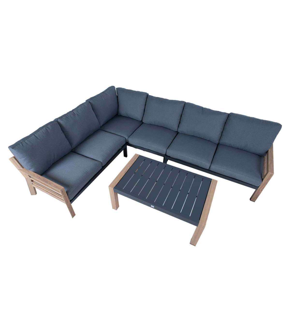 Aiamööblikomplekt TOMSON laud ja nurgadiivan, tiik/hall