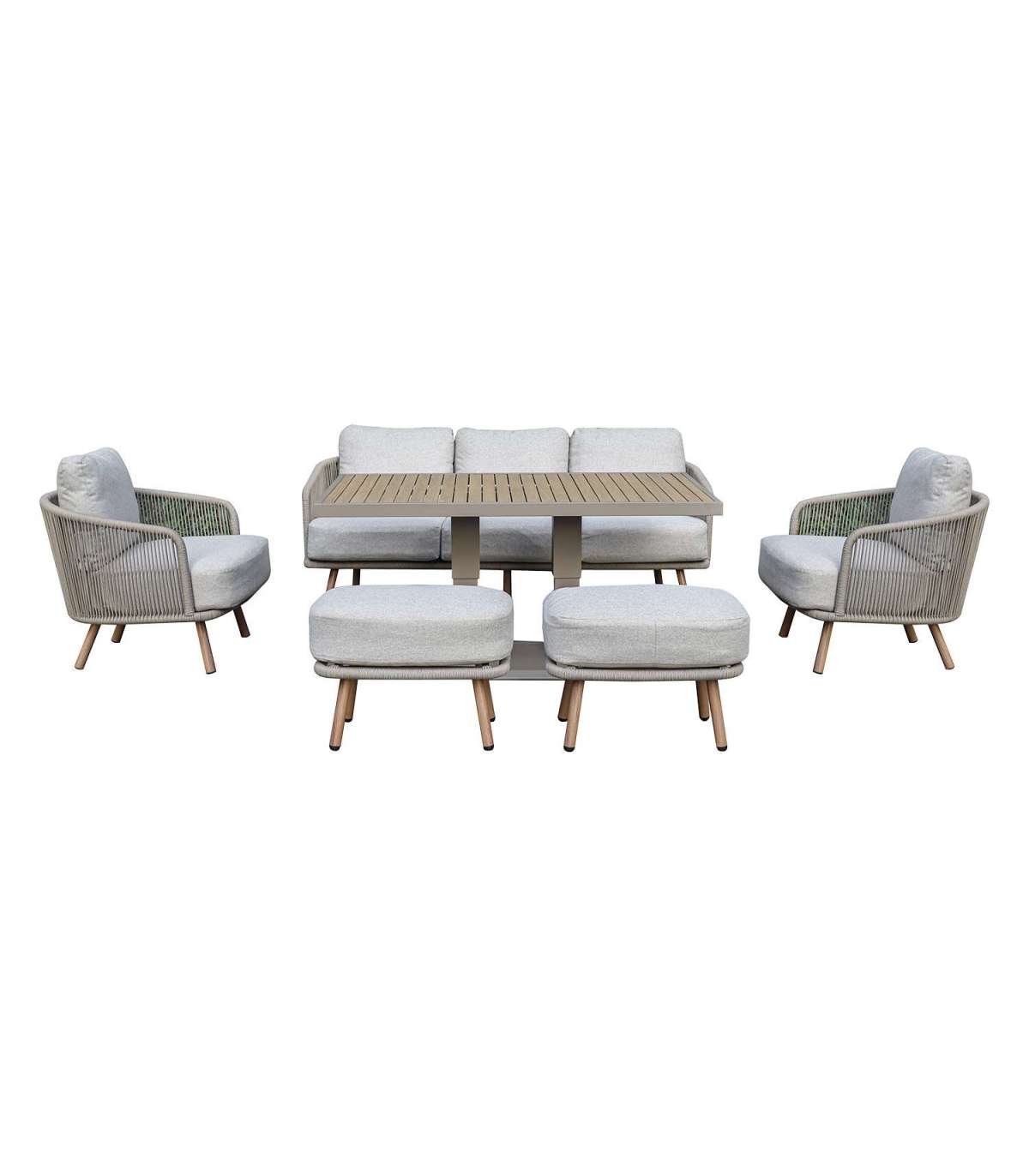 Aiamööblikomplekt MALISE laud, diivan, 2 tugitooli ja 2 tumbat, beež