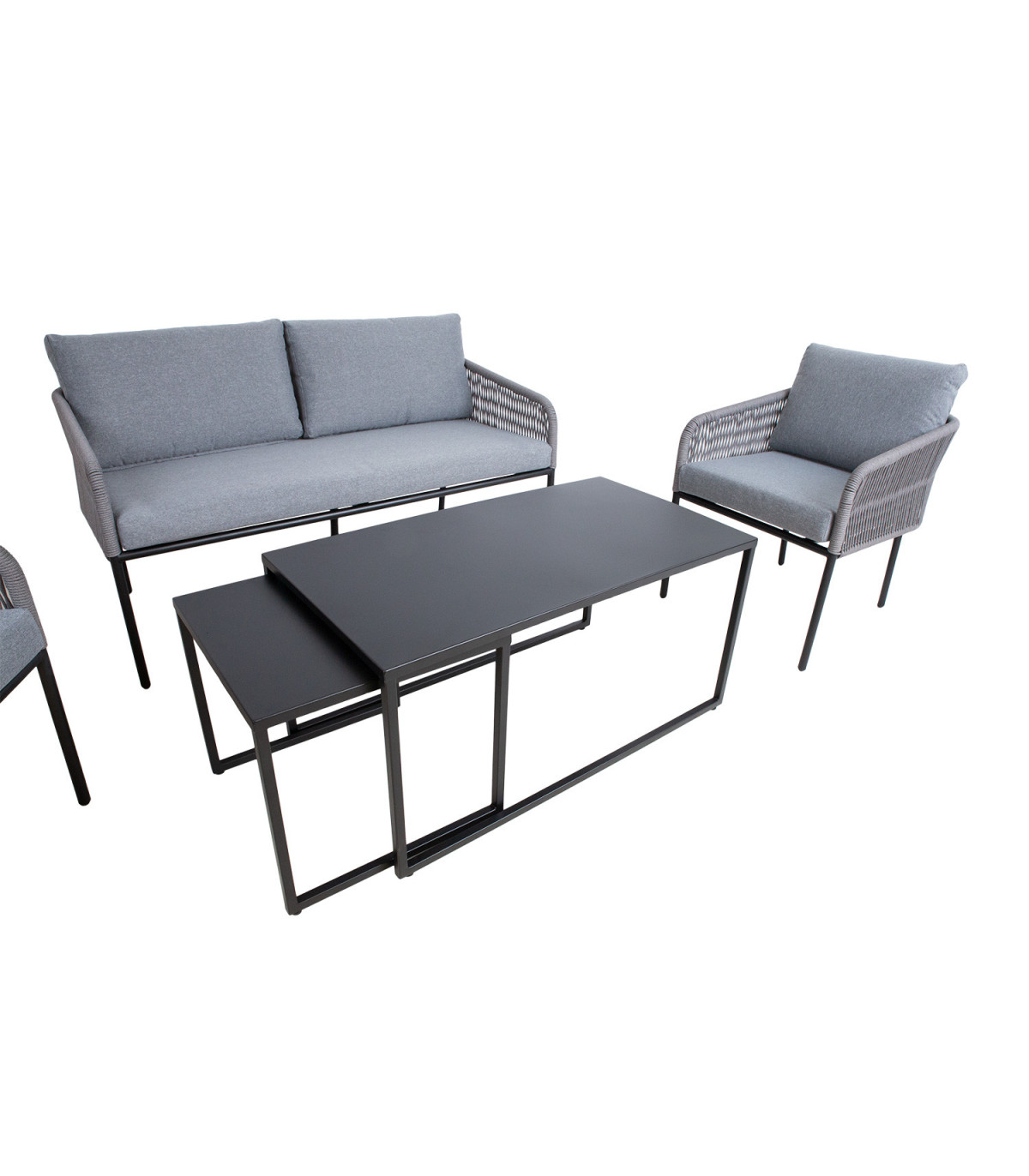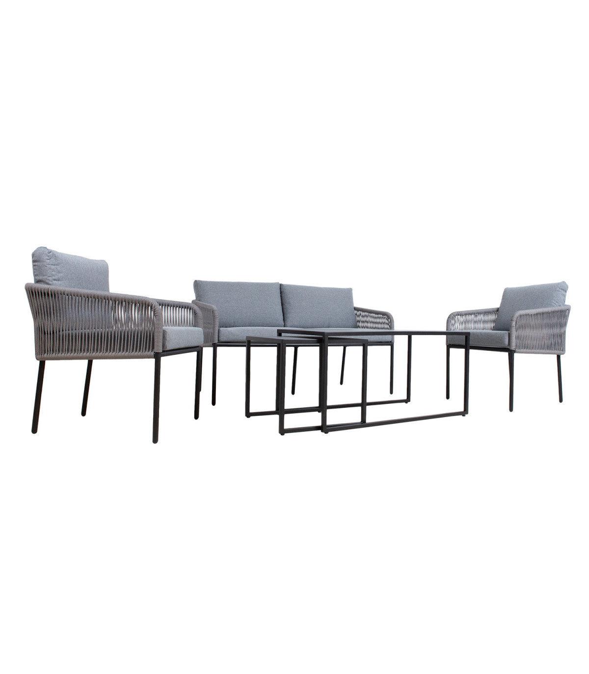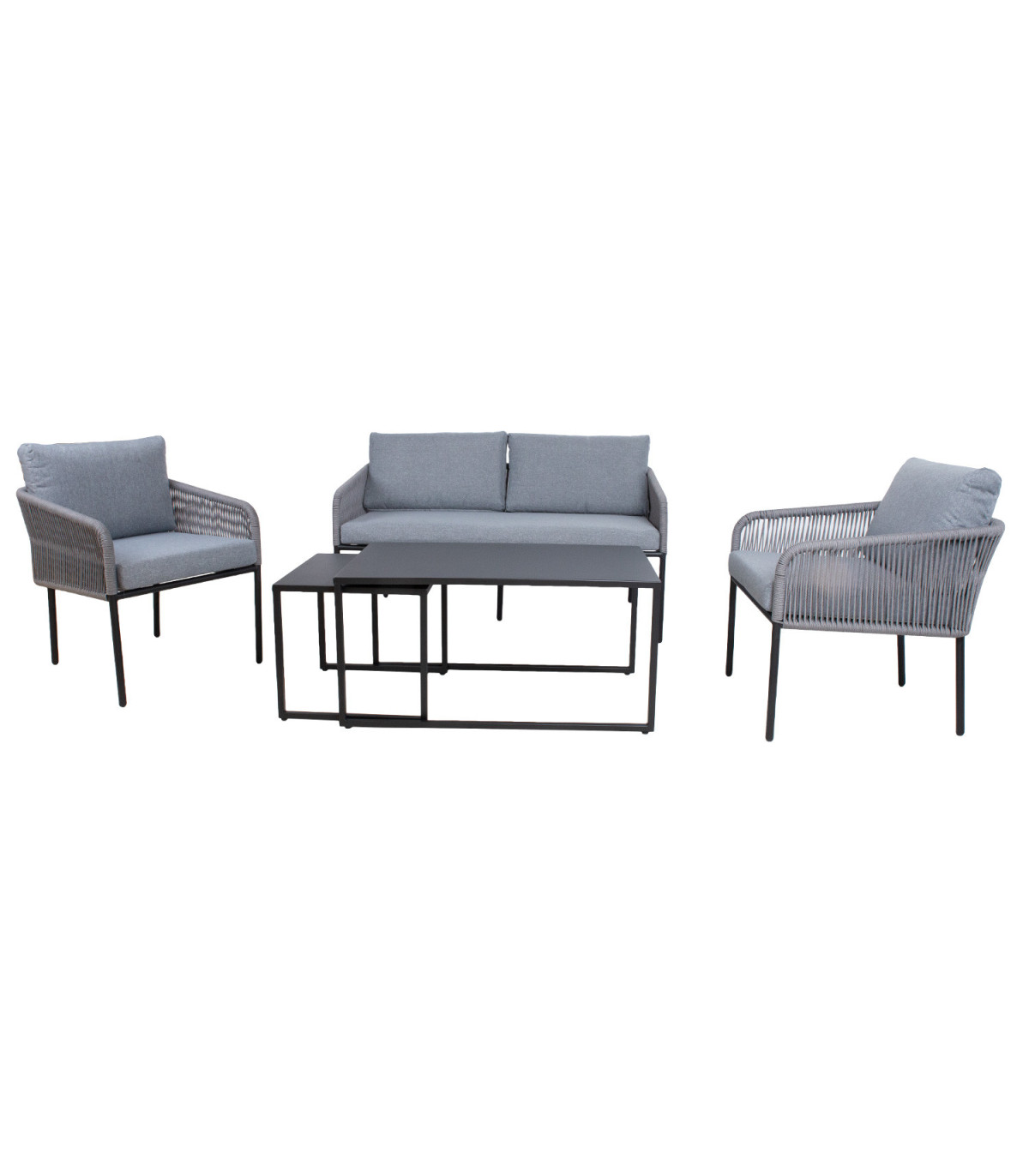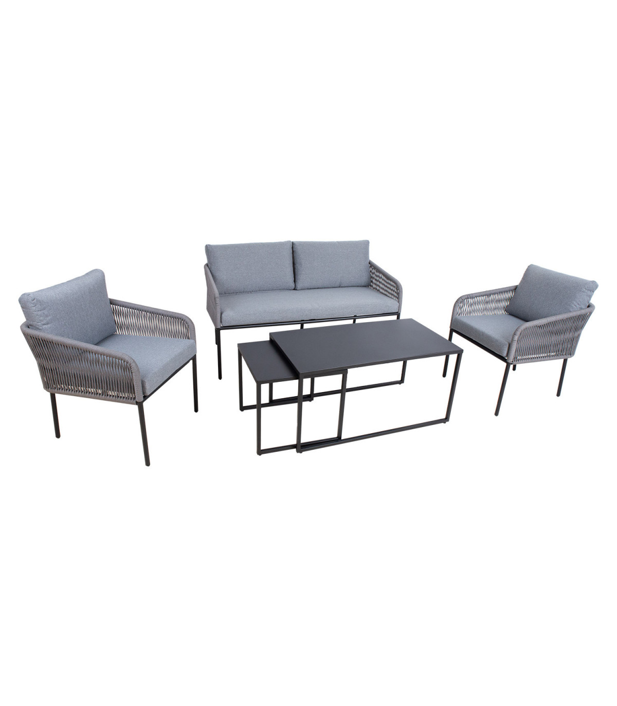 Aiamööblikomplekt LEVINE 2 lauda, diivan ja 2 tooli, hall