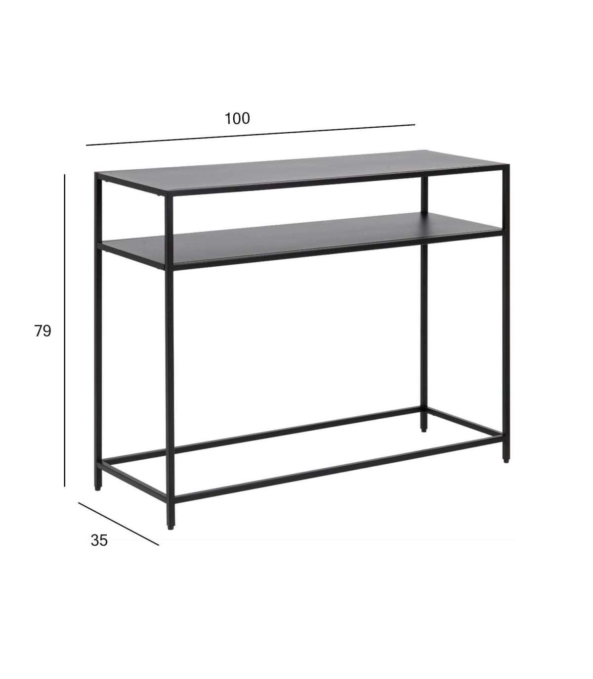 Lihtsa vormiga konsoollaud, mis sobib ideaalselt esikusse, elutuppa või garderoobi. Kaasaegsele lauale lisab tööstuslikku ilmet metallist pulbervärvitud raam. Laua võib dekoreerida meelisesemetega või hoida pind praktilisena võtmete ja prillide jaoks. Lauaplaat, riiul ja alus: mattmust pulbervärvitud teras. Mõõdud 100x35xH79cm.