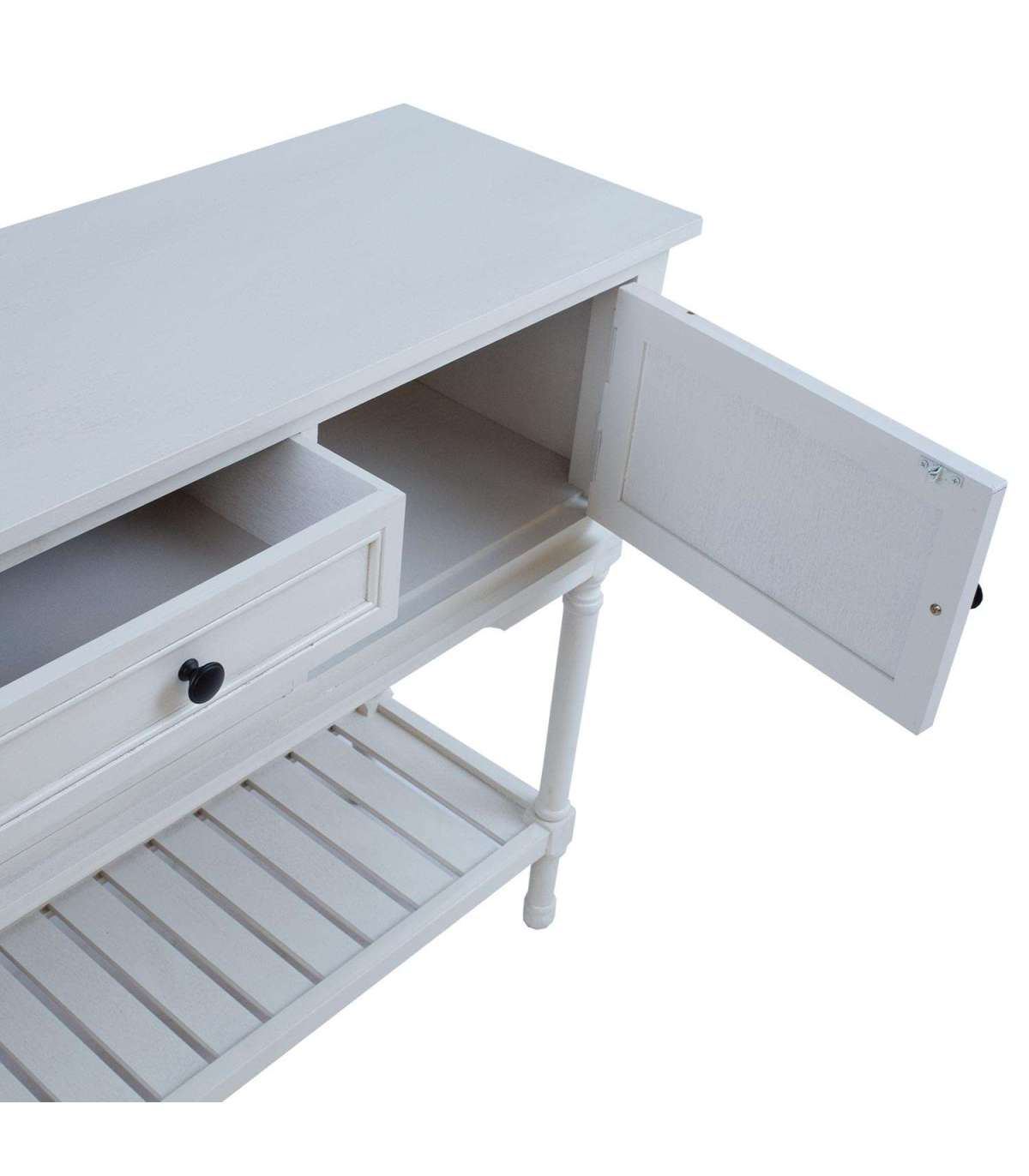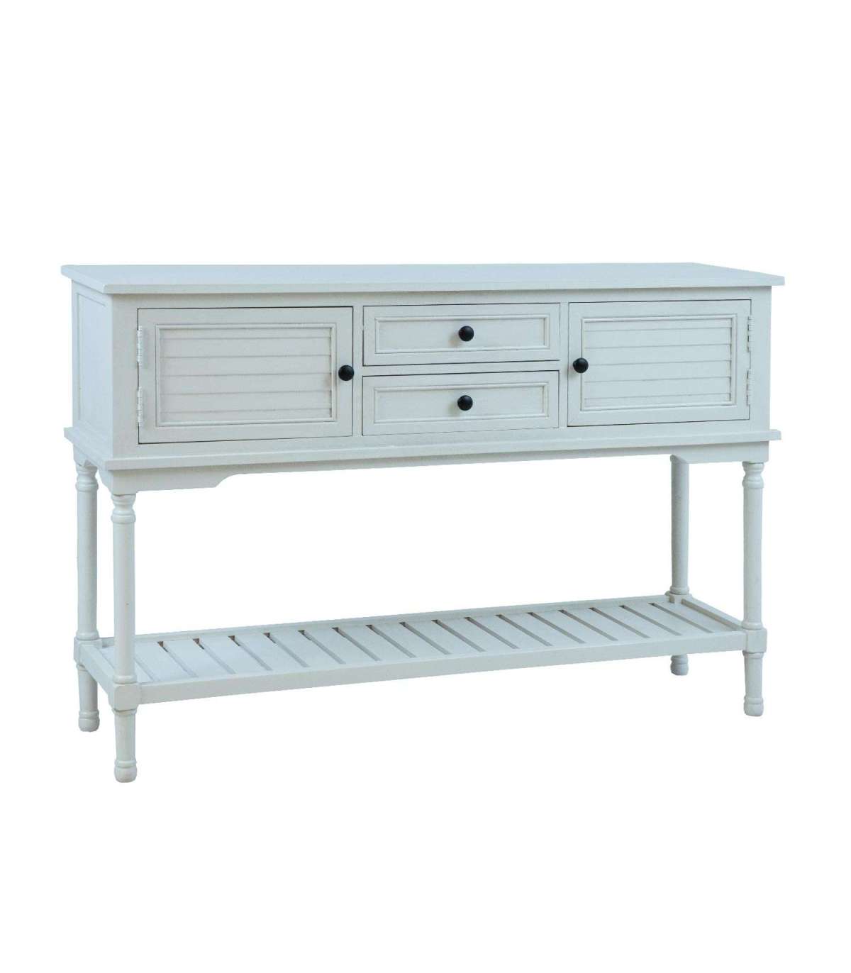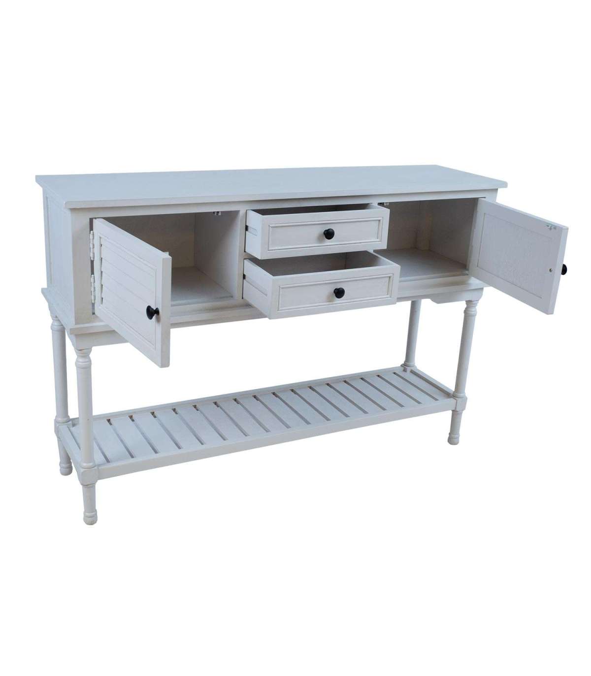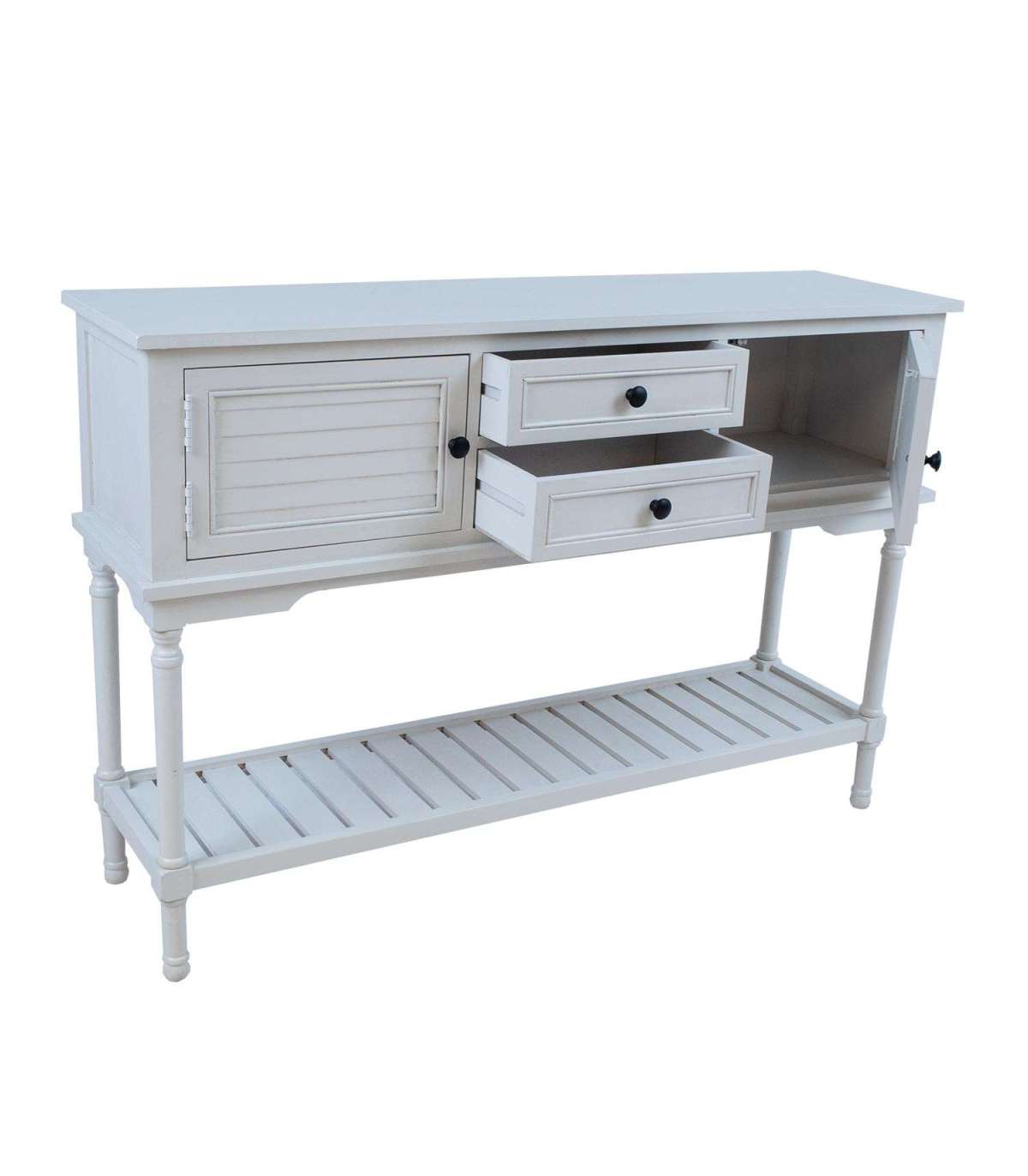Abilaua põhikonstruktsioon ja sokkel on valmistatud männipuidust. Pealmine lauaplaat, sahtlid ja paneelid on värvitud MDF. Abilaud on viimistletud valge värviga. Metallist käepidemetega sahtlid on ilma siinideta.
