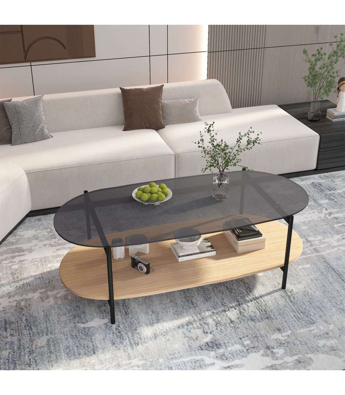 Diivanilaud CINDY 120x55xH40cm, hall klaas/melamiin tamm